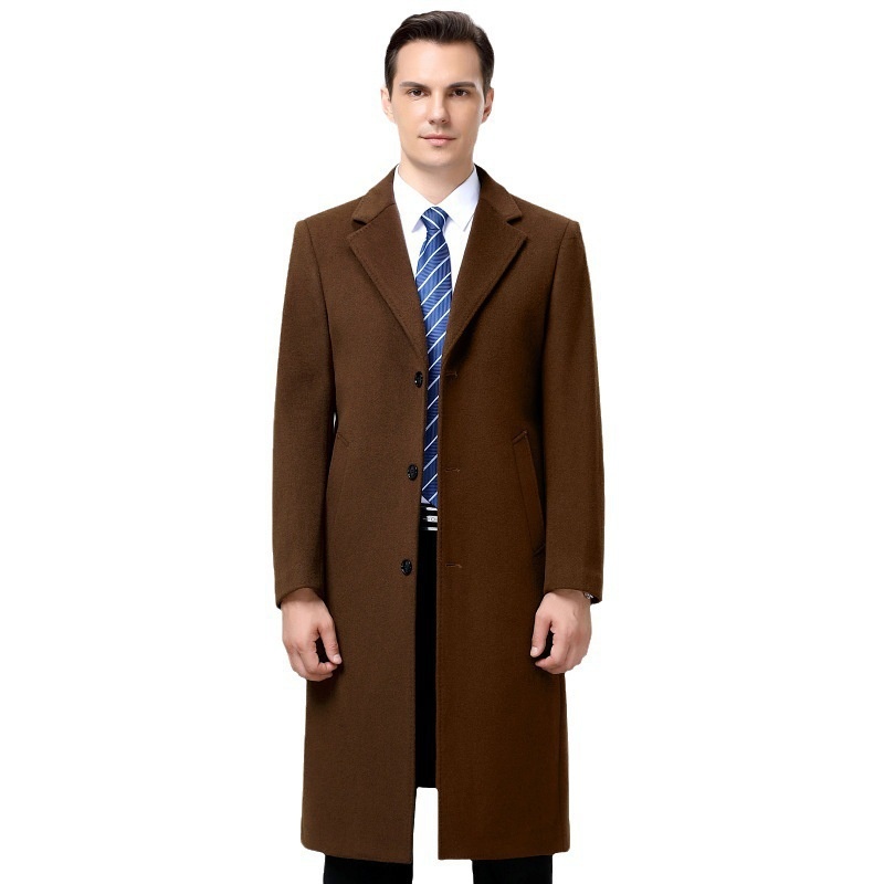 Knee Long Cashmere Tweed Coat Young Middle-aged Men's Windbreaker Coat Quality Men's Overcoat
