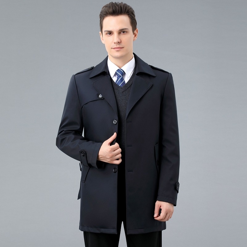 AGeneration Of Autumn And Winter Long Padded Windbreaker Men's Middle-aged Padded Removable Cashmere Liner Coat