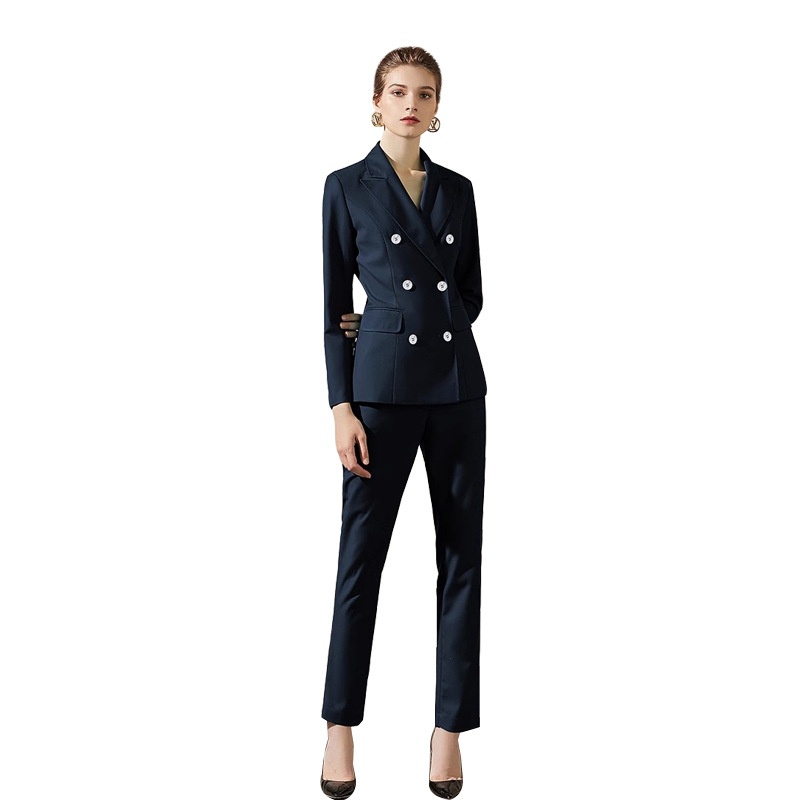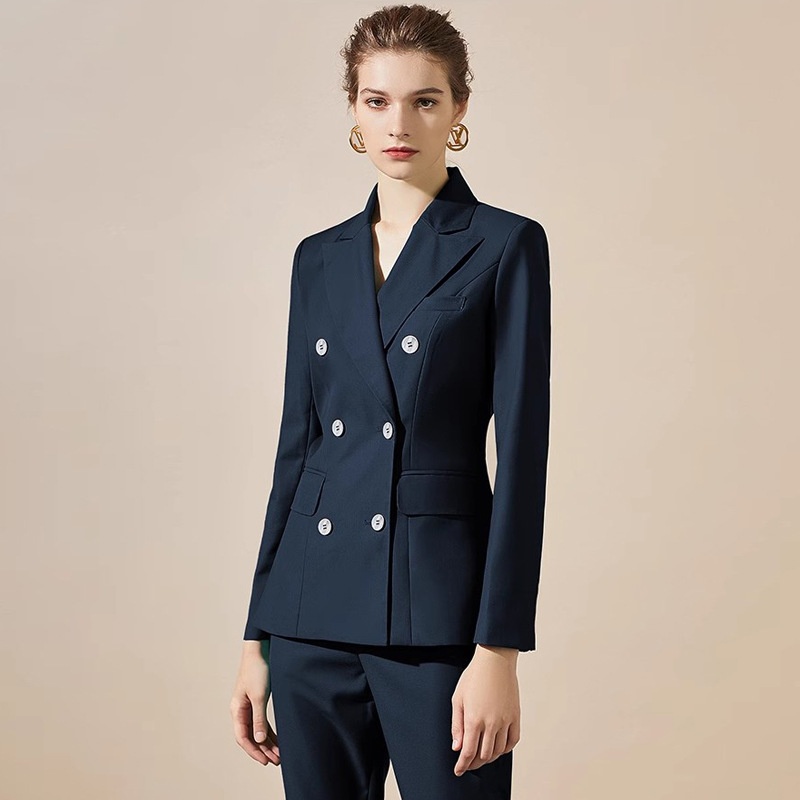 Fashion Spring And Autumn Navy Blue Double-breasted Business Wear Women's Pants Suit College Students Interview Dress Work Clothes OL