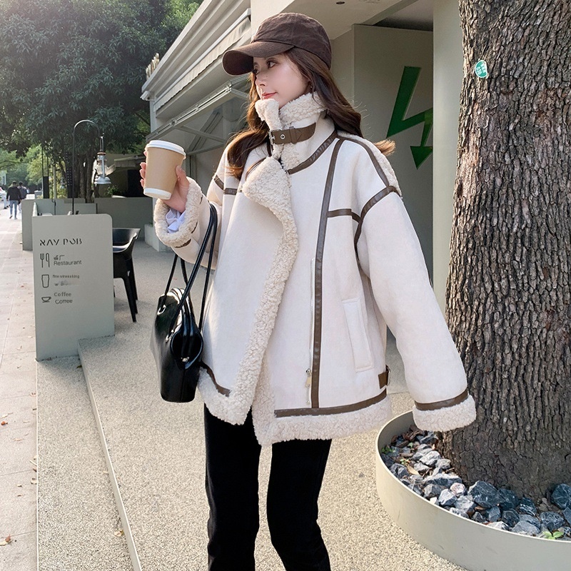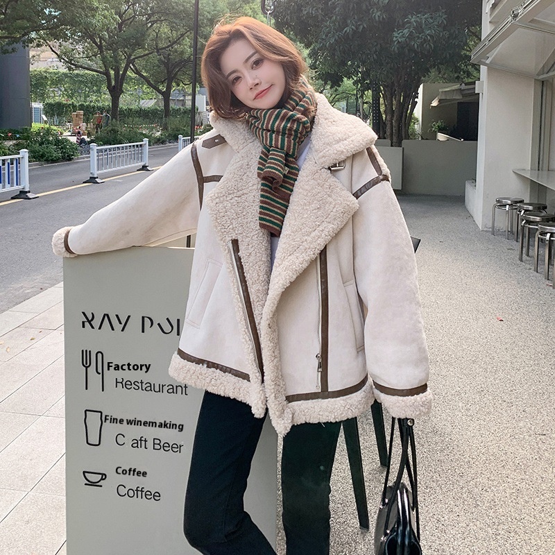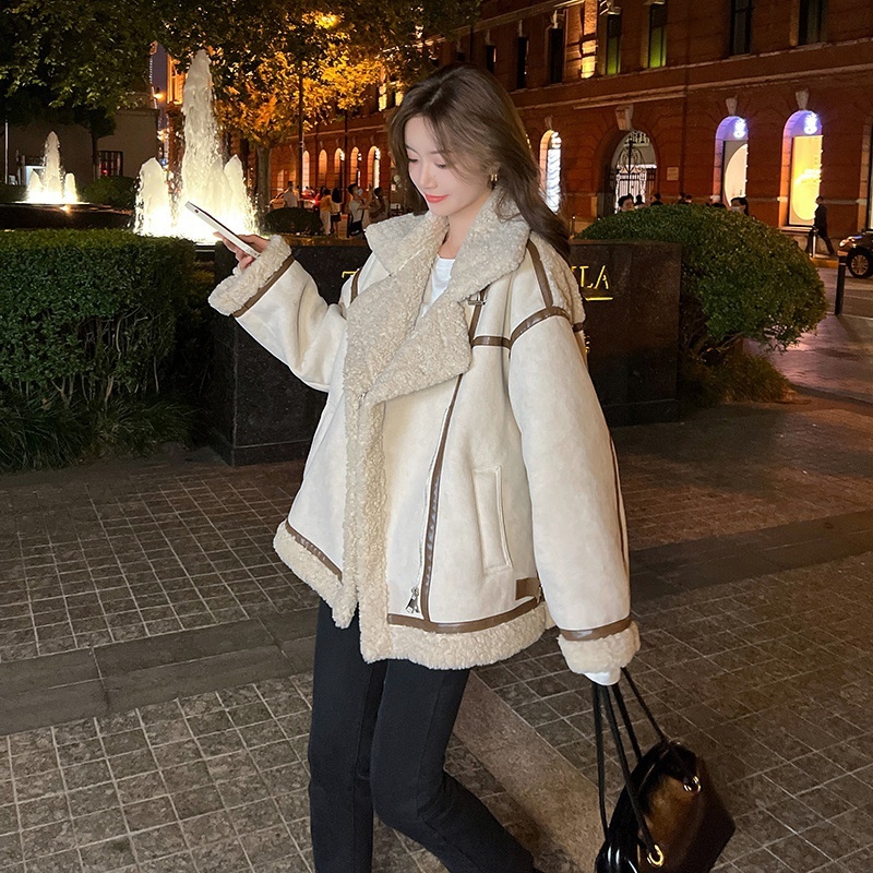 American Retro Splicing Lamb Fur Coat Fur Jacket Short Fashion Street Top