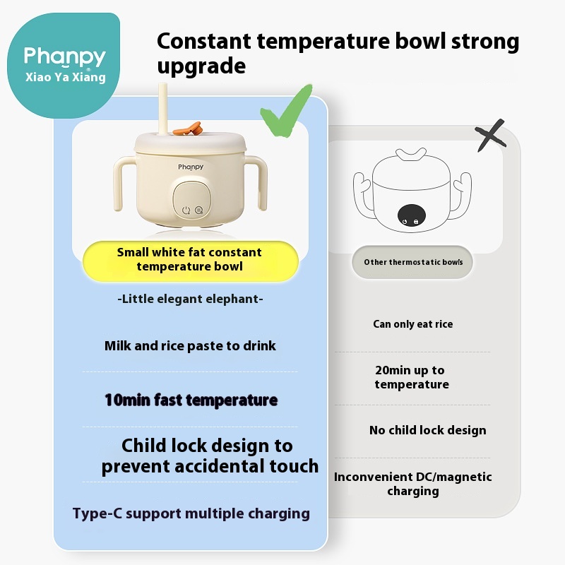 Xiaoya Elephant Baby Constant Temperature Bowl Baby Charging Heating Water-Free Children's Intelligent Electronic Heat Preservation Straw Supplementary Bowl