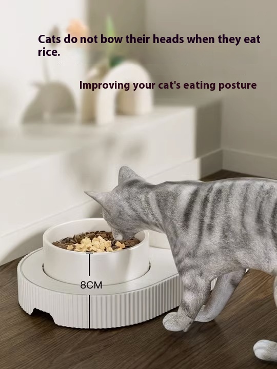 Cat Bowl Ceramic Double Bowl Cat Food Pot Dog Bowl Dog Bowl Cat Rice Bowl Water Bowl Protecting Cervical Spine Drinking Water Integrated Pet Bowl