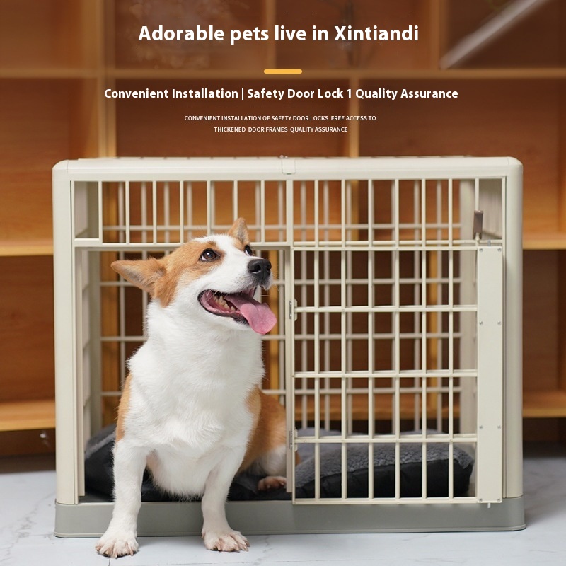 Resin Dog Cage With Toilet Household Indoor Small And Medium Sized Dog Teddy Pet Kennel Universal Wheel Fence Cage
