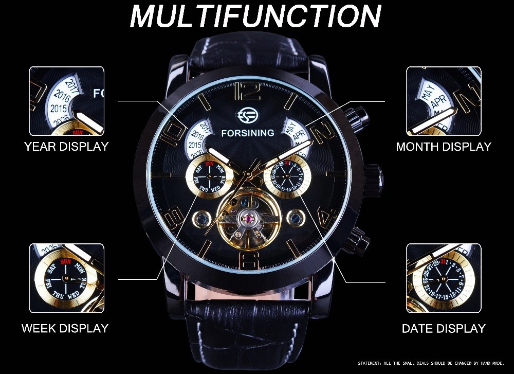 Forsining Tourbillon Men's Automatic Mechanical Watch-Year,Month,And Date Display Wristwatch