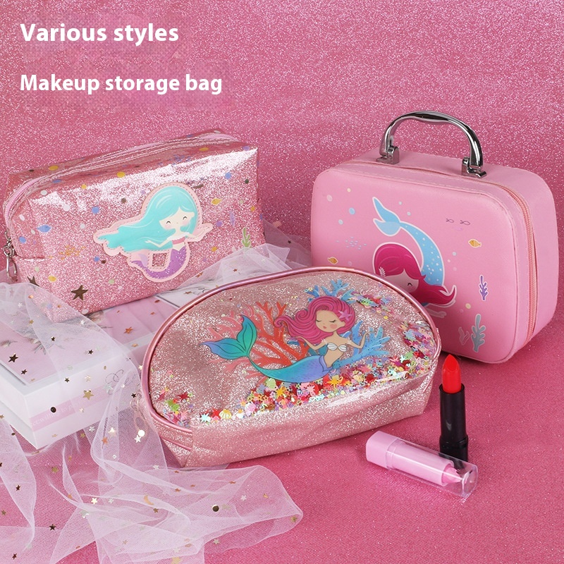 Mermaid Children's Cosmetics Makeup Simulation Toy Princess Makeup Bag Set Lipstick Eyeshadow