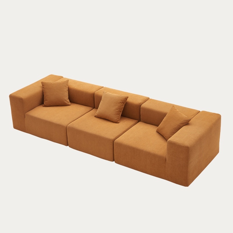 Hot-selling Full Sponge Compressed Fabric Sofa Living Room Small Apartment Four-person Straight Row Combination Tofu Block Sofa