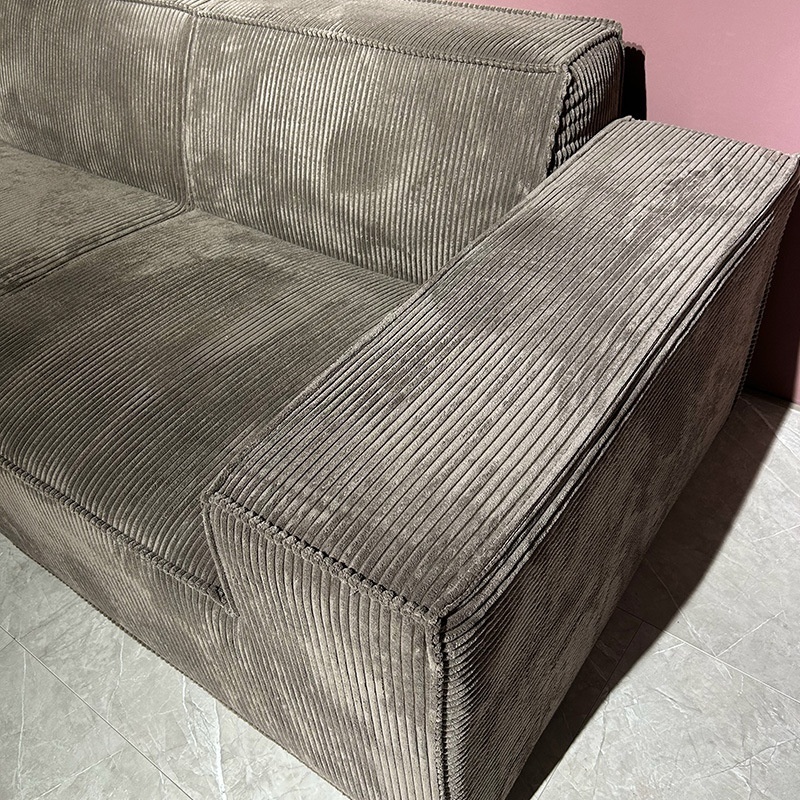 Modern Simple Tofu Block Sofa Corduroy Antique Style Straight Vacuum Compression Roll Package Big Black Cow Fabric Sofa