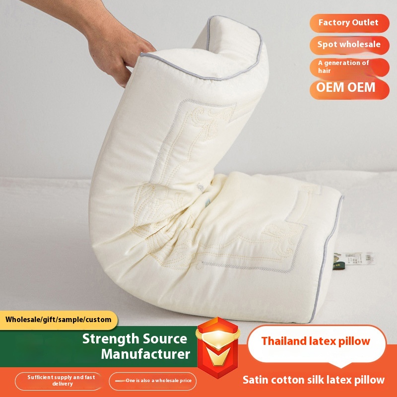 High-end Satin Pure Cotton Silk Latex Pillow Thailand Natural Latex Anti-mite Neck Protection Household Pillow Supermarket Exclusive