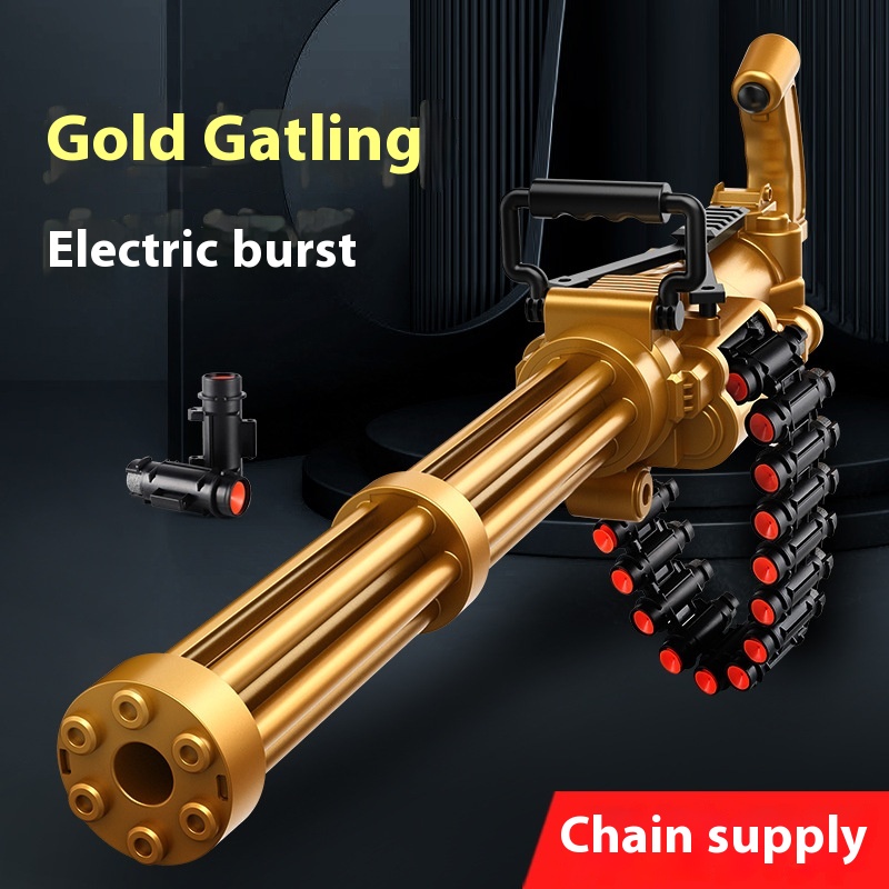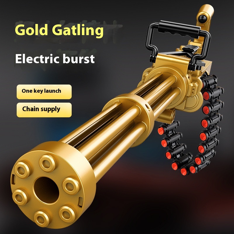 Children's Golden Gatling Toy Gun–Electric Chain-Fed,Soft Bullet Gun With Ejectable Shells And Rapid-Fire Action