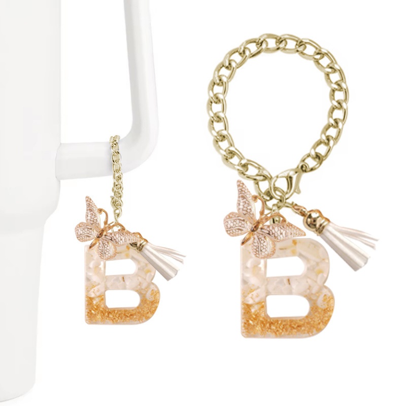 Stanley White Resin Cup Chain26 Letters Butterfly Tassel Accessories Stone Gold Foil Jewelry