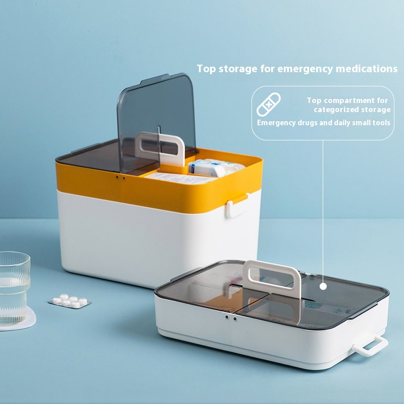 Large Medicine Box Double-layer Household Plastic Partition First Aid Box Simple Large Capacity Storage Dust-proof And Moisture-proof Durable