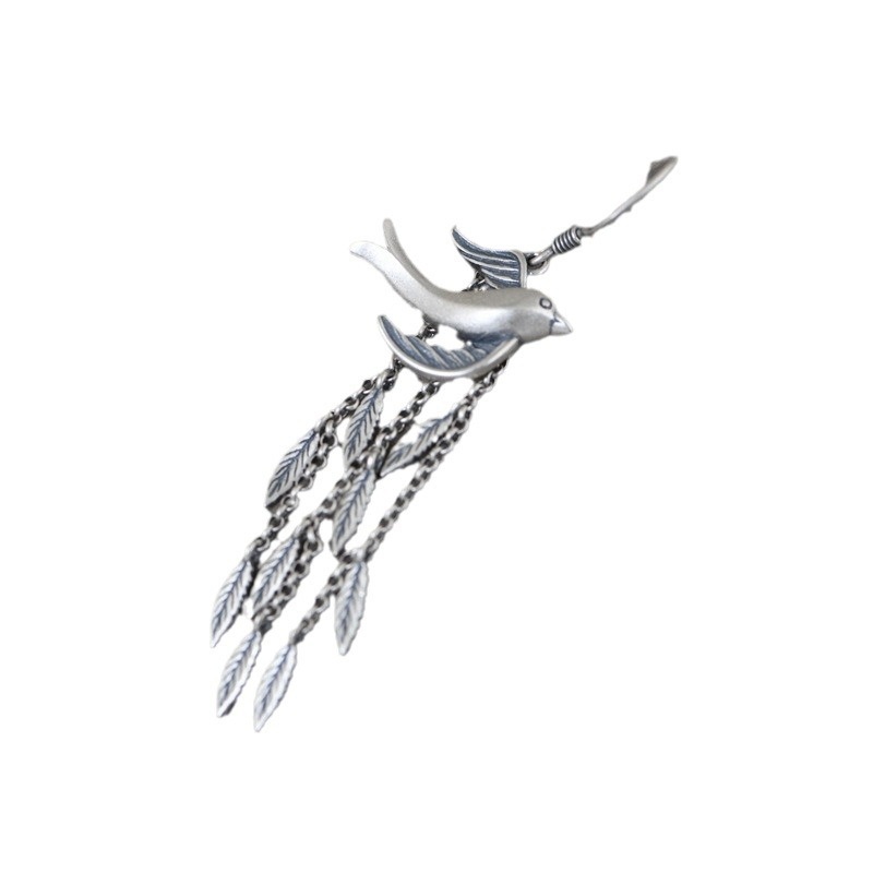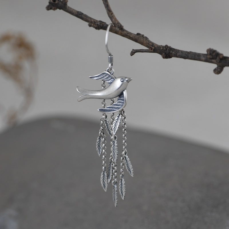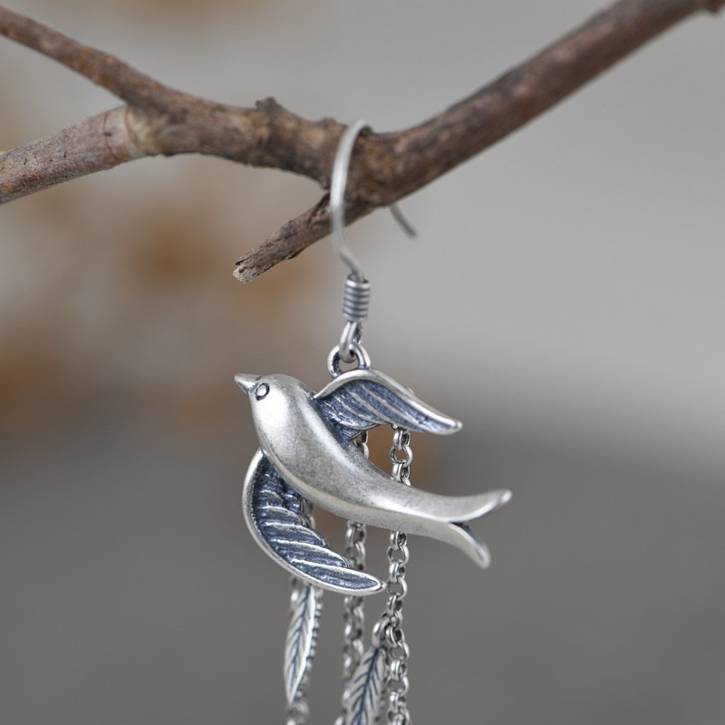 Golden Deer King S925 Silver Retro Old Craft Earrings For Women Ethnic Style Little Swallow Long Tassel Thai Silver Earrings