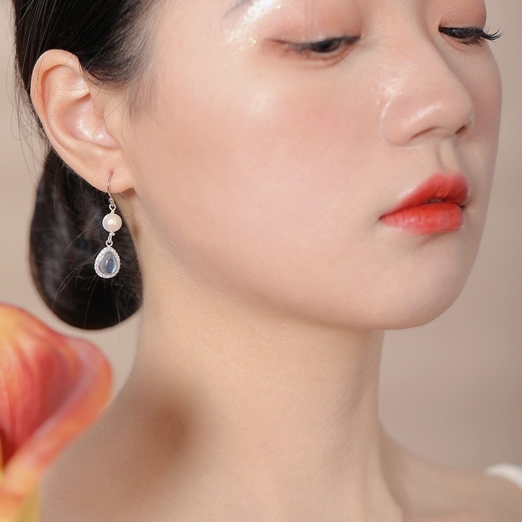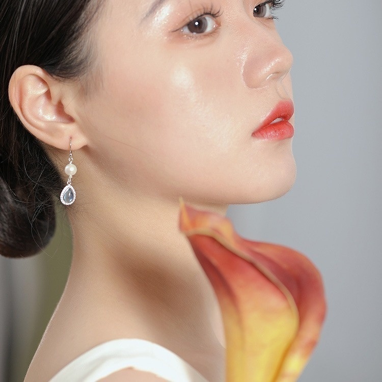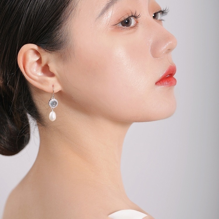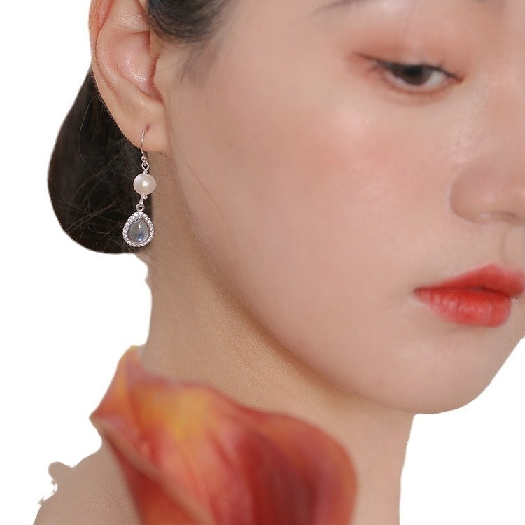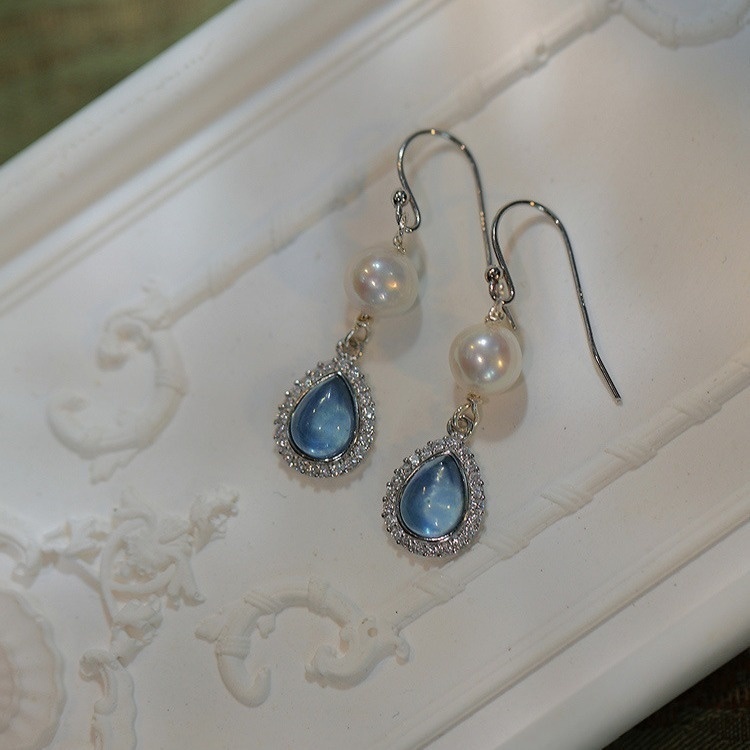 Aquamarine Freshwater Pearl S925 Silver Earrings Light Luxury Temperament Simple And Versatile Niche Design Earrings