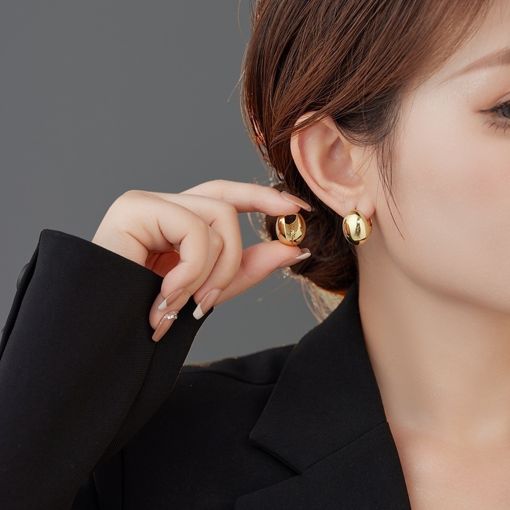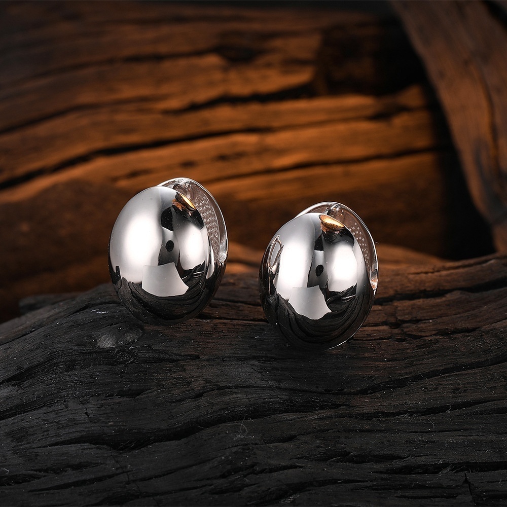 S925 Sterling Silver Acacia Bean Egg-shaped Earrings For Women,Simple French Temperament,Smooth Personality,Niche Design
