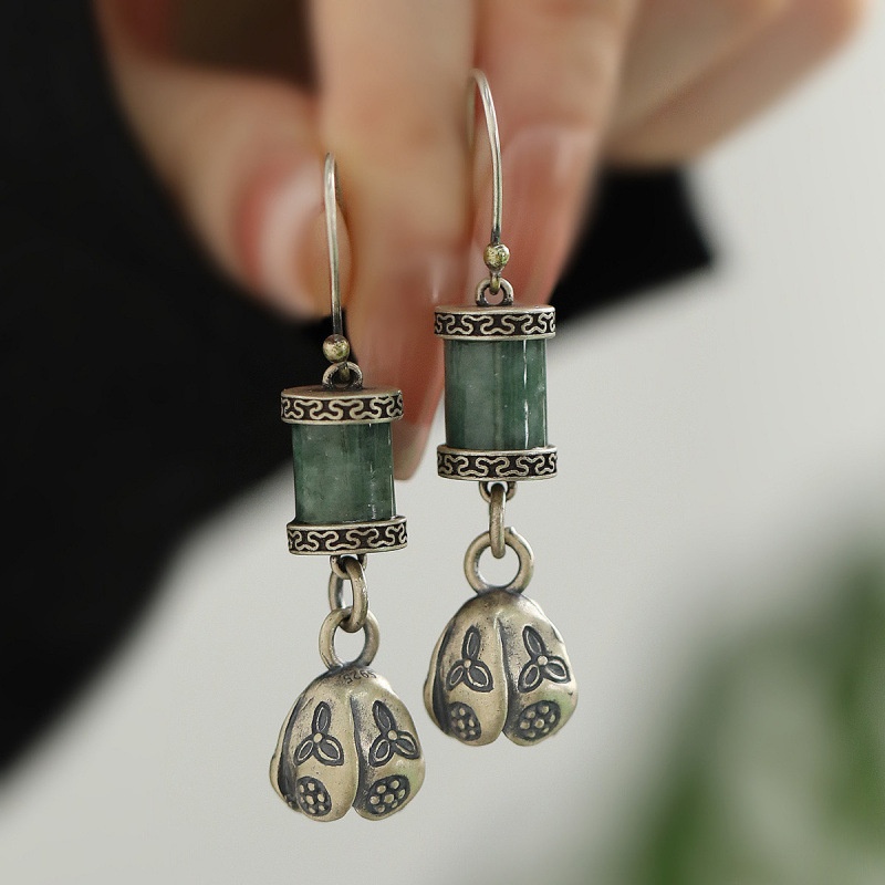 925 Silver Small Flower Cuicui Earrings Retro Old Ethnic Style Lotus Earrings Temperament Personality Versatile Accessories