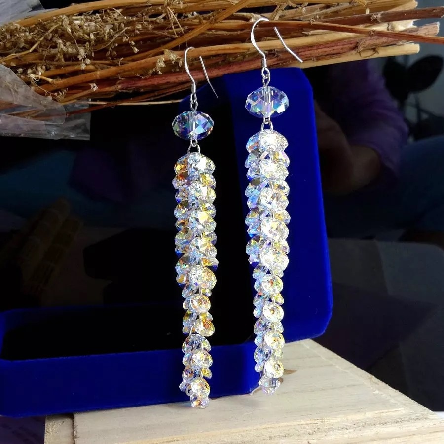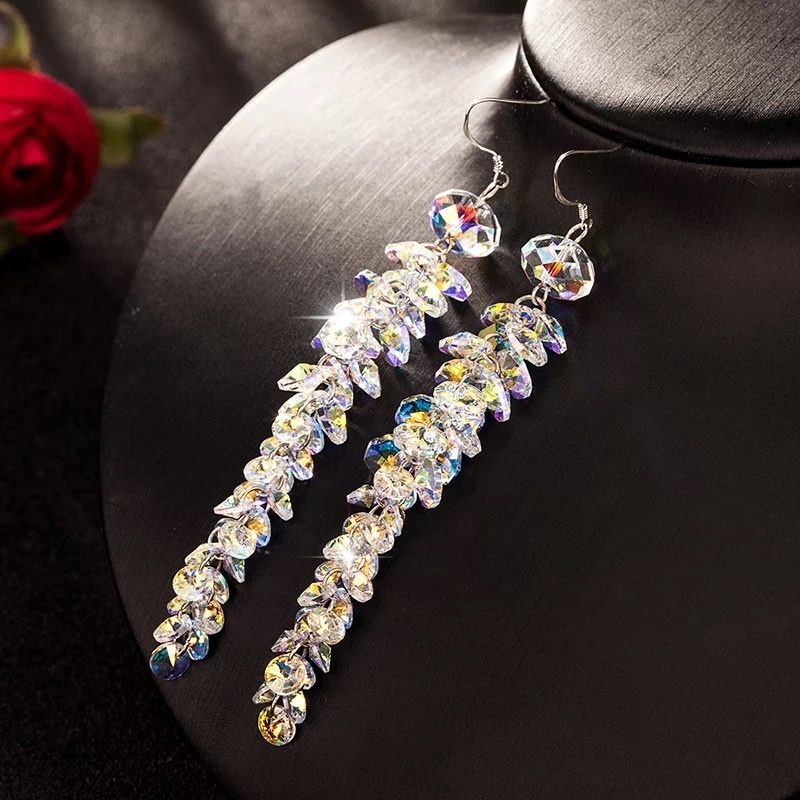 Handmade S925 Pure Silver Ear Hook Earrings Austrian Long Tassel Crystal Earrings Female Popular Silver Jewelry