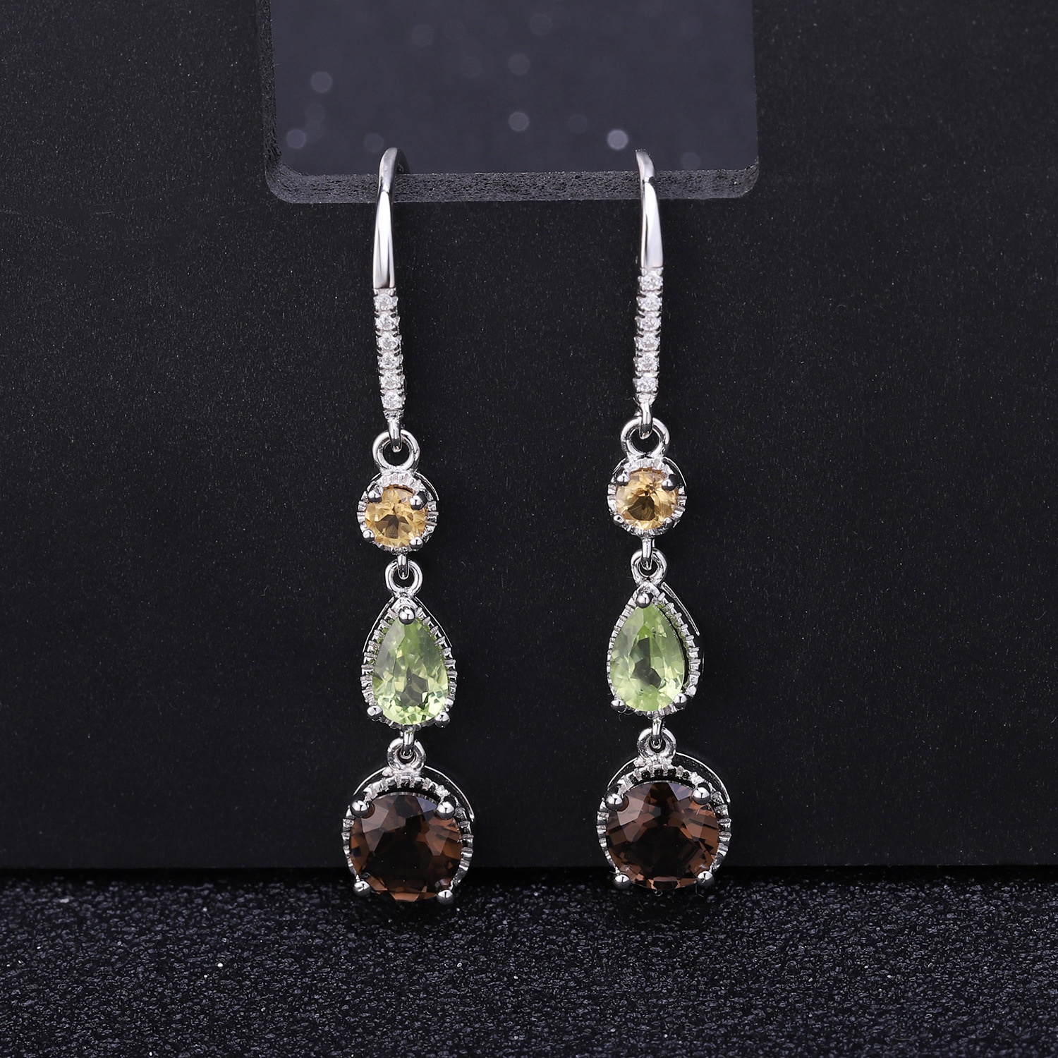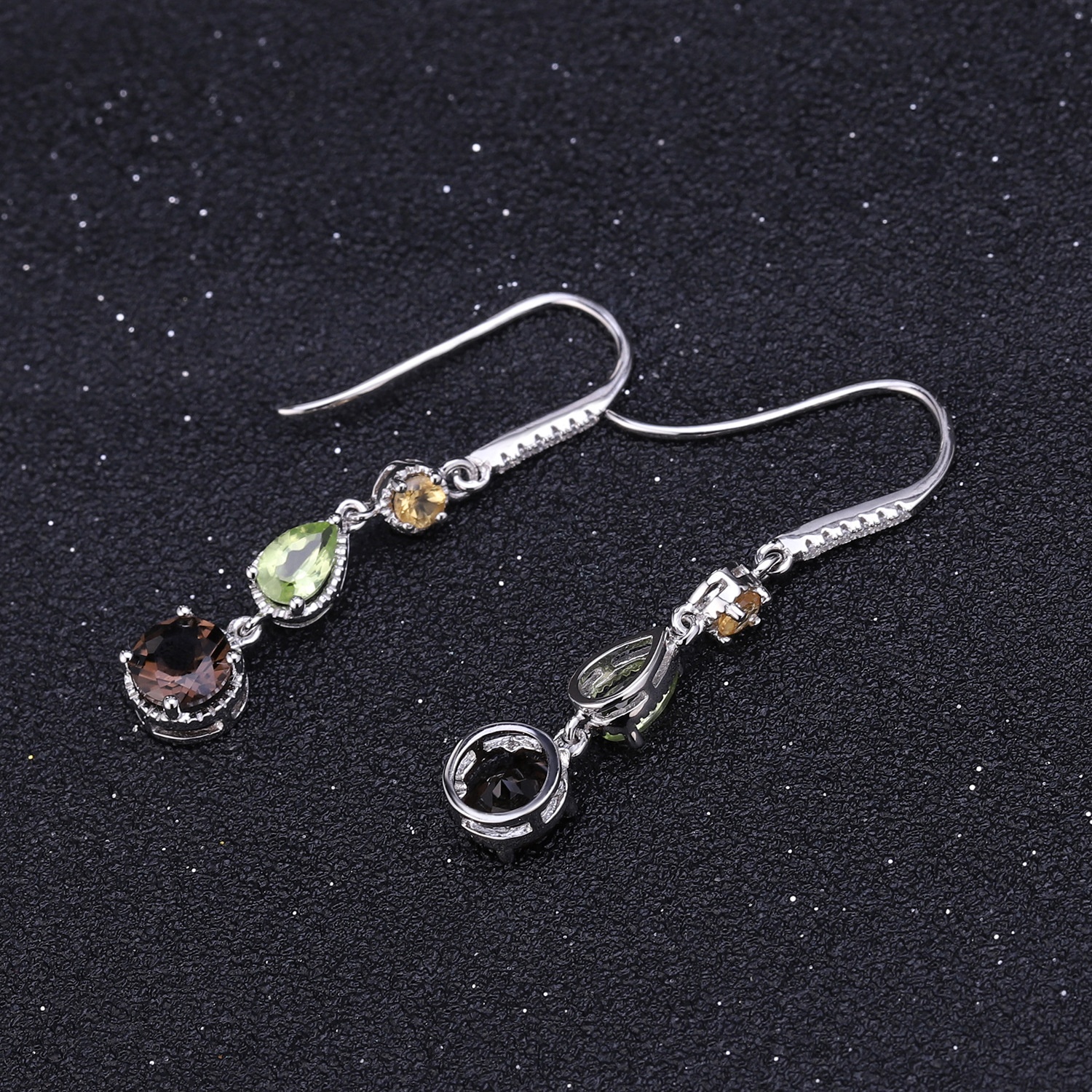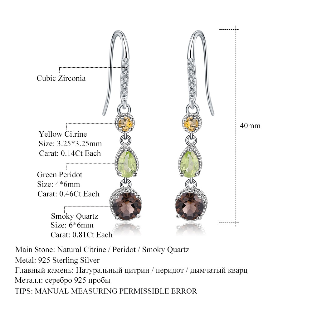 Series925 Silver Inlaid Smoky Quartz Earrings High-end Atmosphere