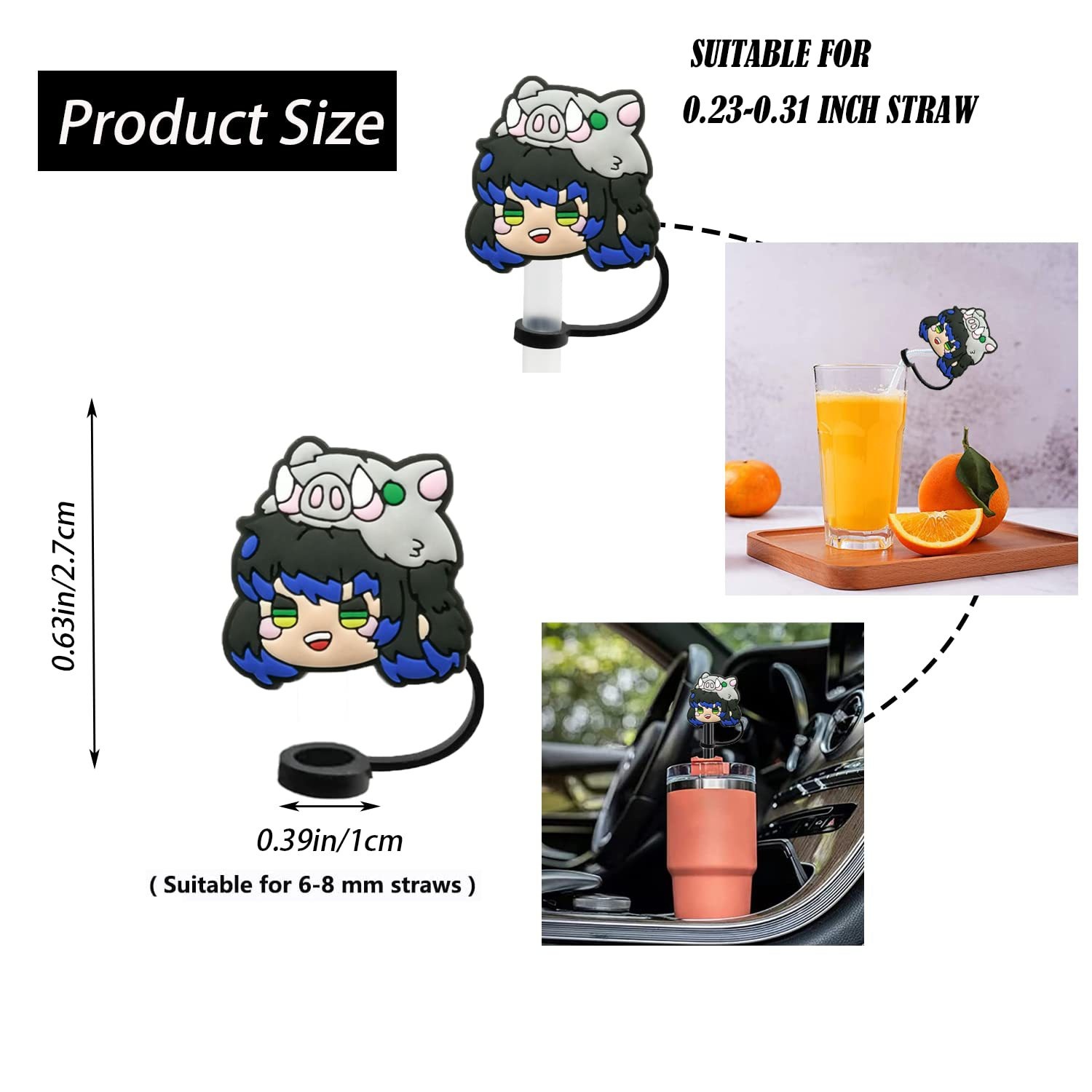 Japanese Anime Silicone Straw Cap Dust Plug8mm10mm Straw Cover Party Decoration Clip Reusable