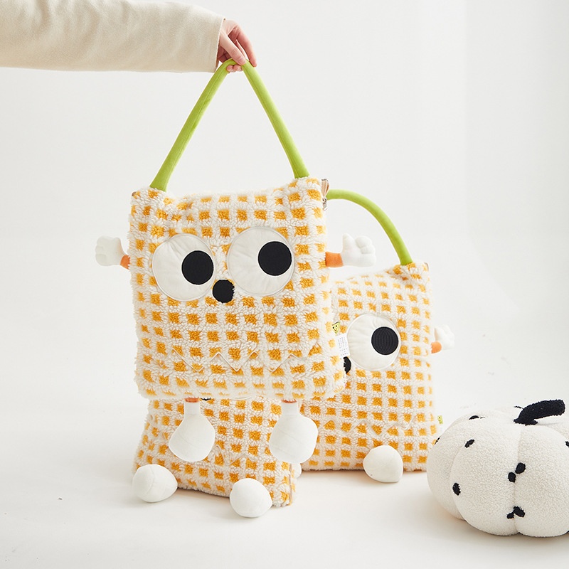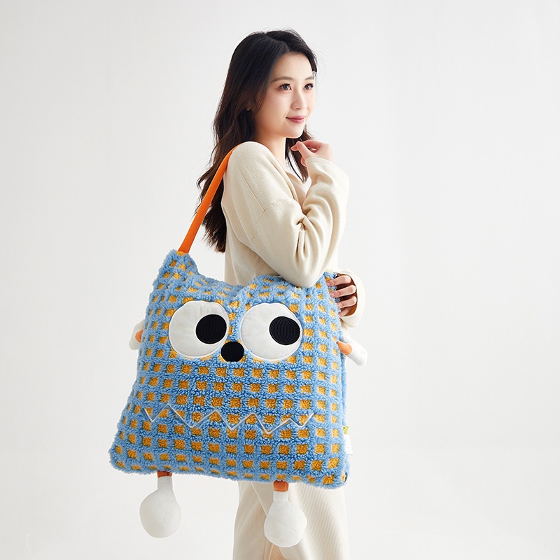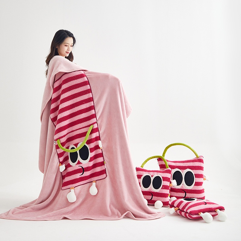 Big-eyed Monster Embroidered Lambskin Flannel Blanket Dopamine Lunch Break Office Car Cushion Blanket Pillow Blanket