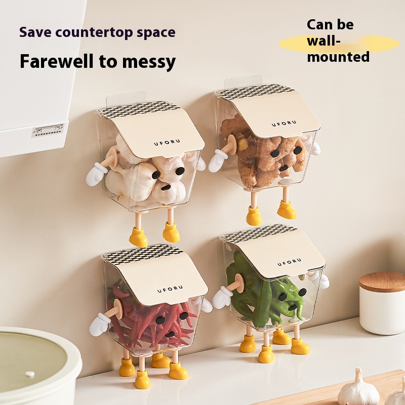 Onion,Ginger And Garlic Storage Box Food Grade Wall-mounted Rack Punch-free Wall Hanging Basket Ginger Garlic Seasoning Storage Basket