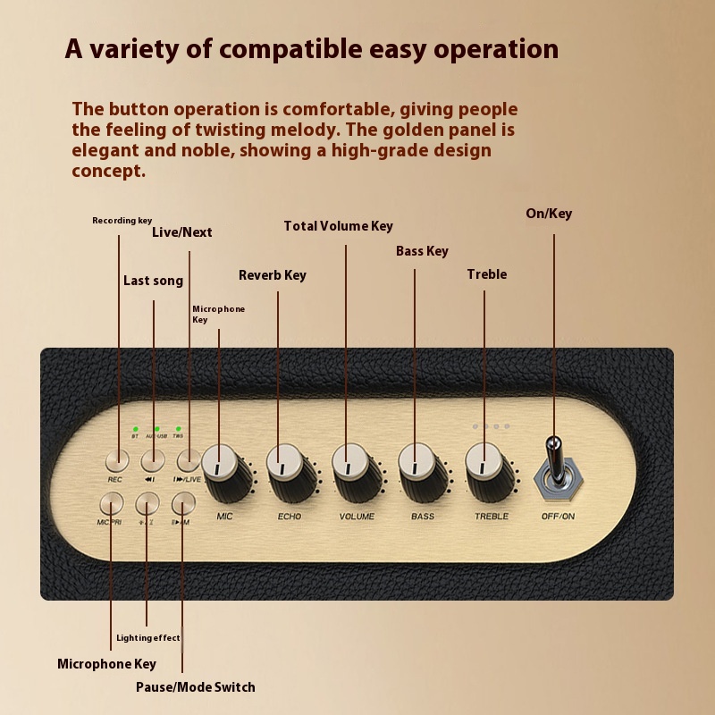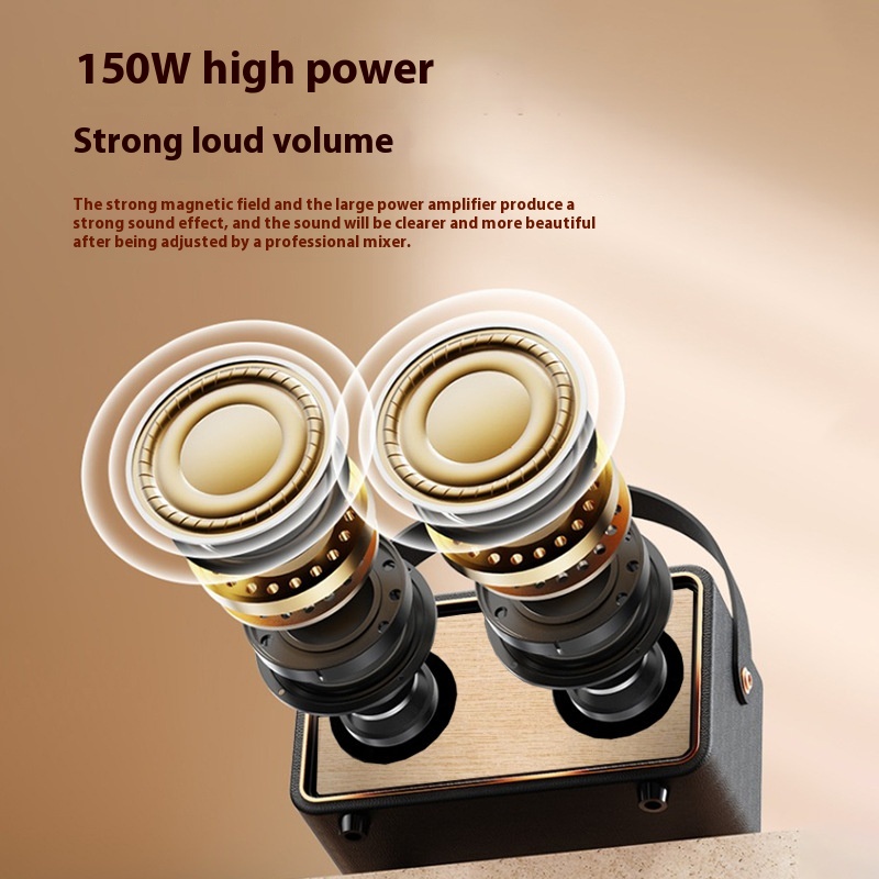 Retro Leather Wooden Bluetooth Speaker High Quality Outdoor Home Karaoke Microphone Portable Bluetooth Speaker