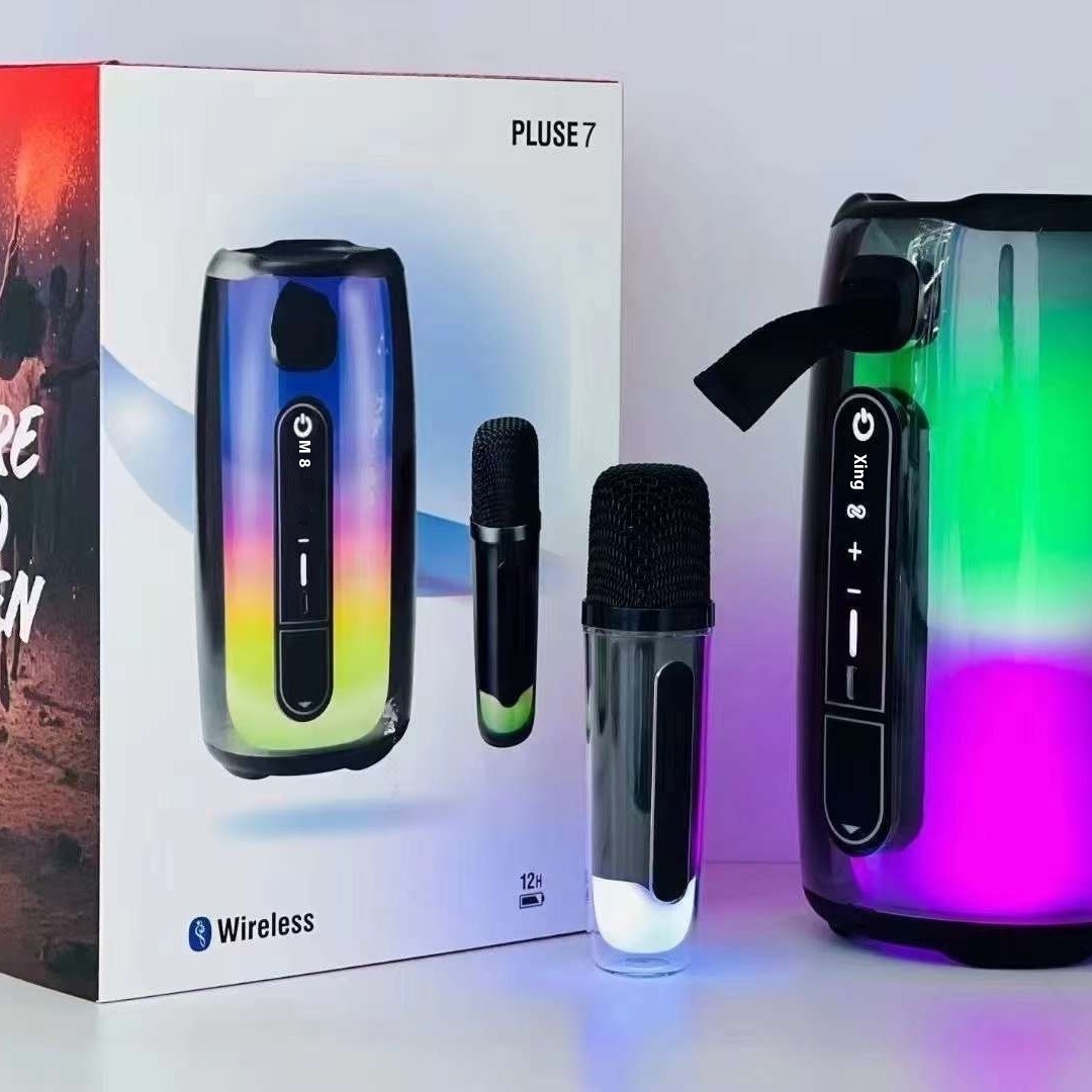 Colorful Pulse7 Bluetooth Speaker Pulse7 Wireless Portable Speaker360-degree Atmosphere Light Karaoke With Microphone