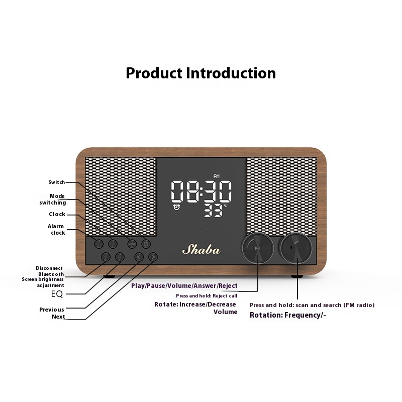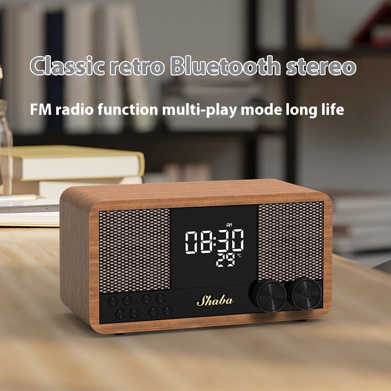 Retro Bluetooth Speaker Wooden Home FMRadio Clock Alarm Clock Audio Bluetooth Subwoofer