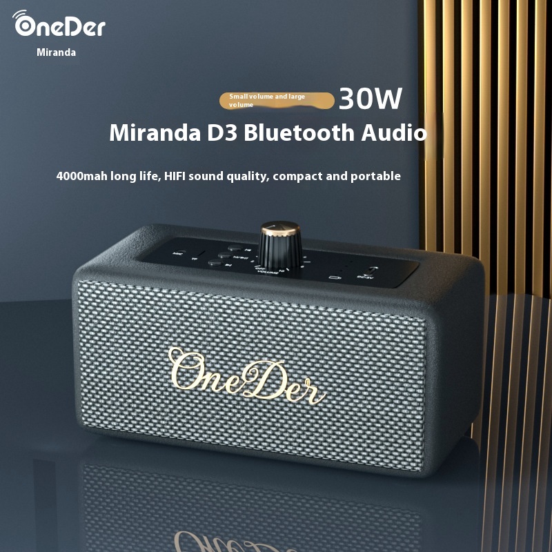 D3 High Volume Bluetooth Speaker30 WSubwoofer Stereo Retro Leather Wireless Card Bluetooth Stereo