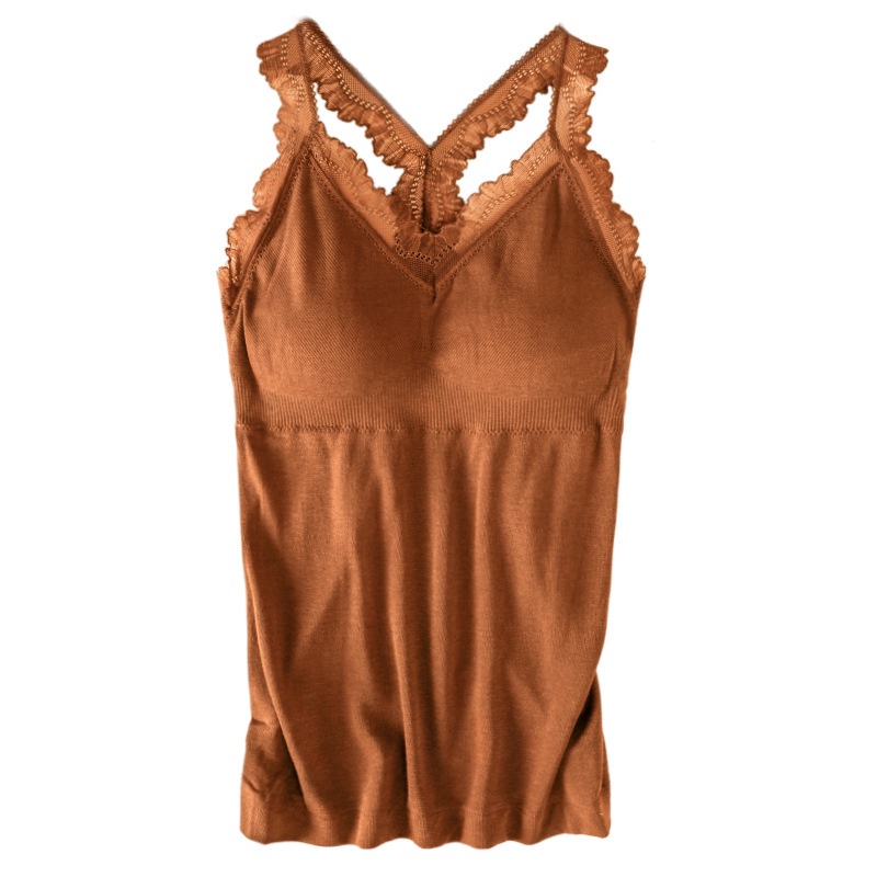 Warm Vest Beautiful Back Lace,Sexy V-neck Sling,Terry Velvet,Solid Color,Slim Fit,With Chest Pads