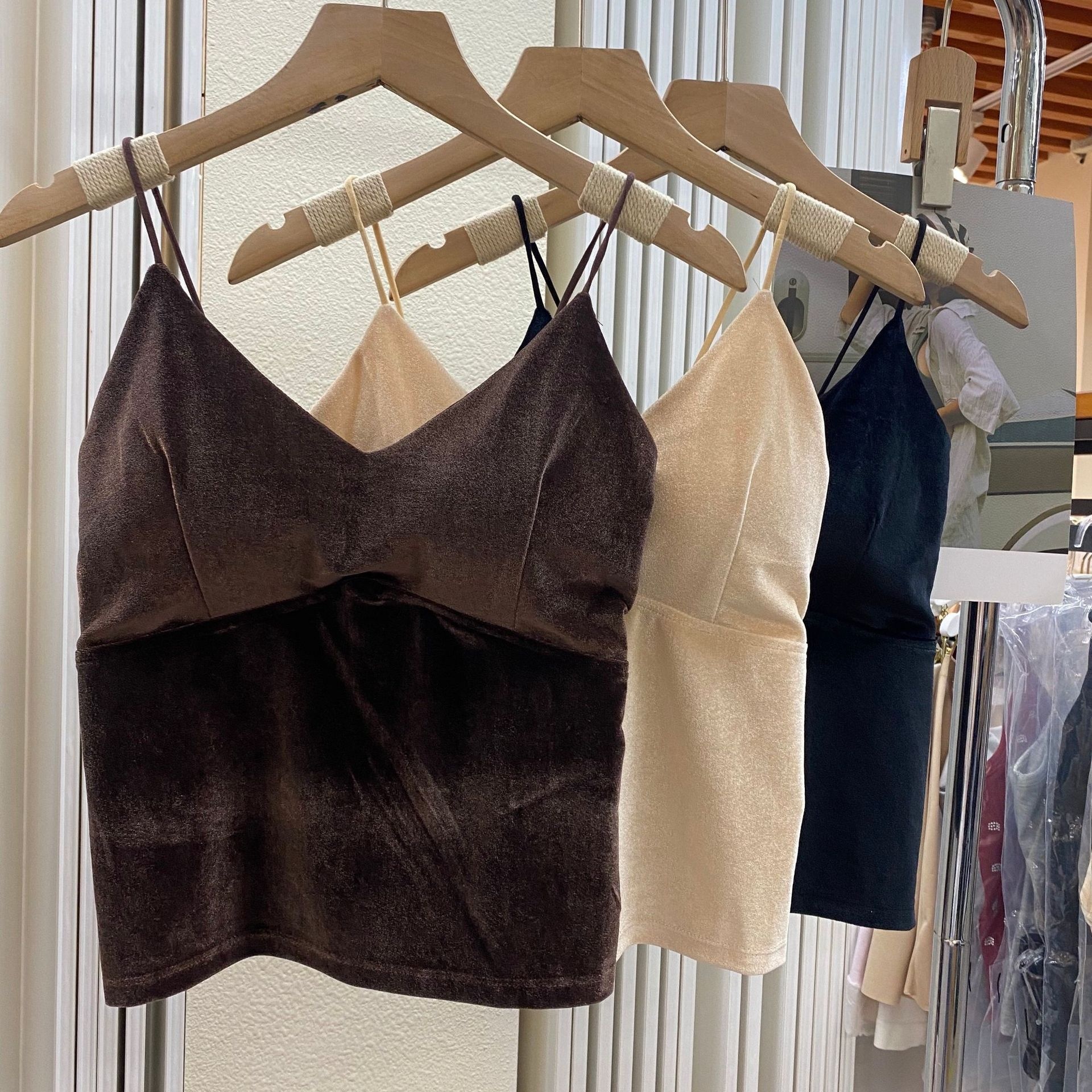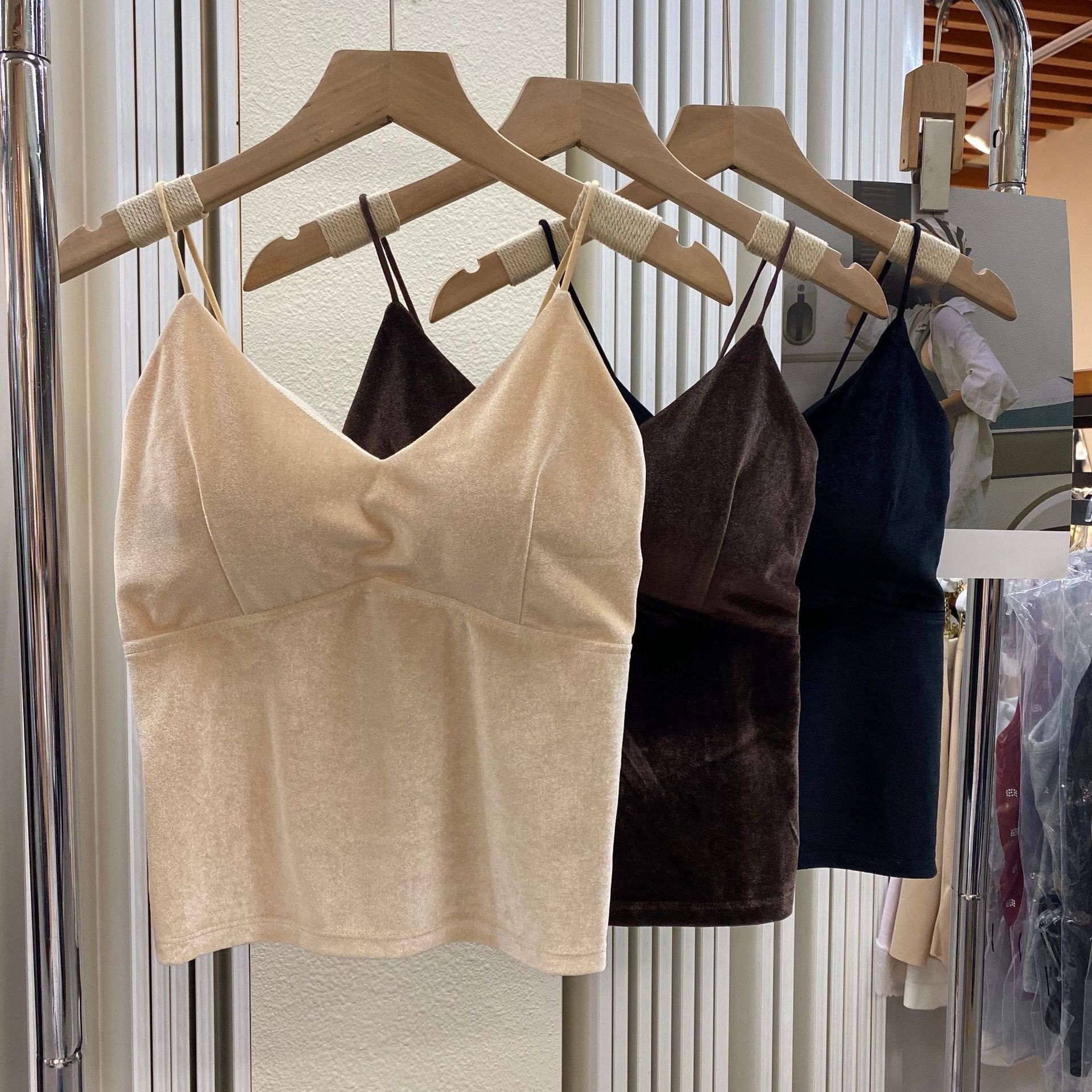 Hot Girl Gold Velvet V-neck Small Camisole Vest Warm Base With Chest Pad Beautiful Back Tube Top