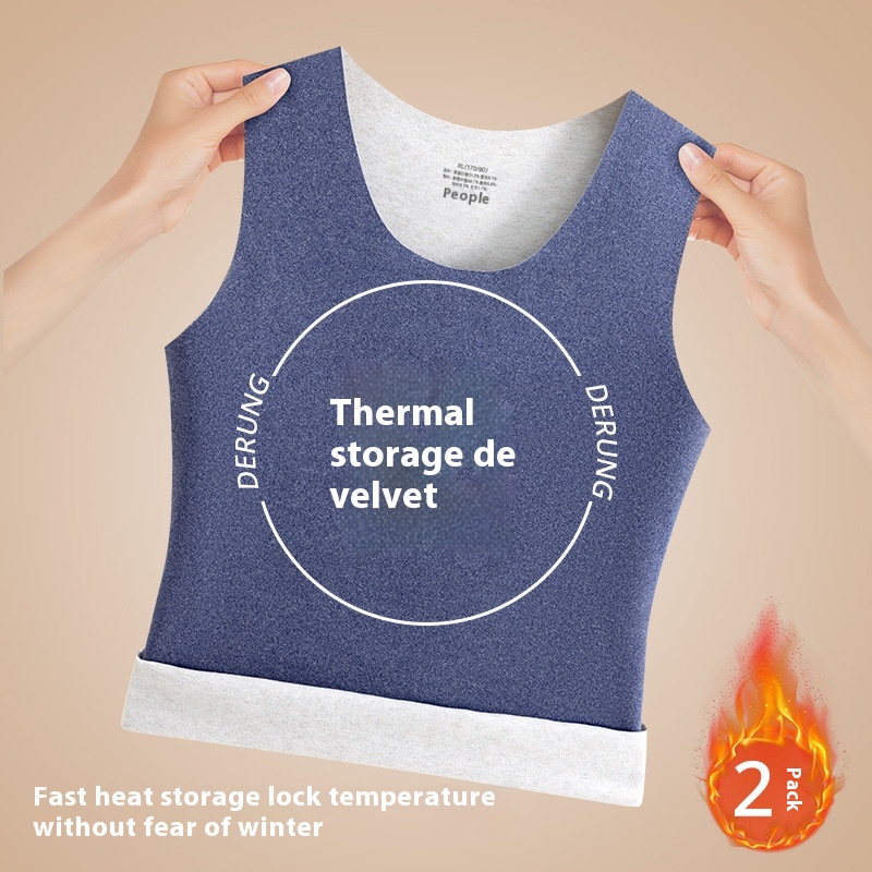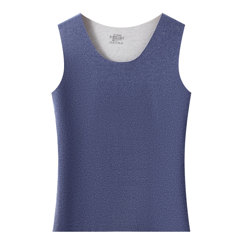 Cashmere Silk Velvet Warm Vest Men's Round Neck Plus Velvet Thickened Seamless Bottom Men's Self-heating Vest Large Size