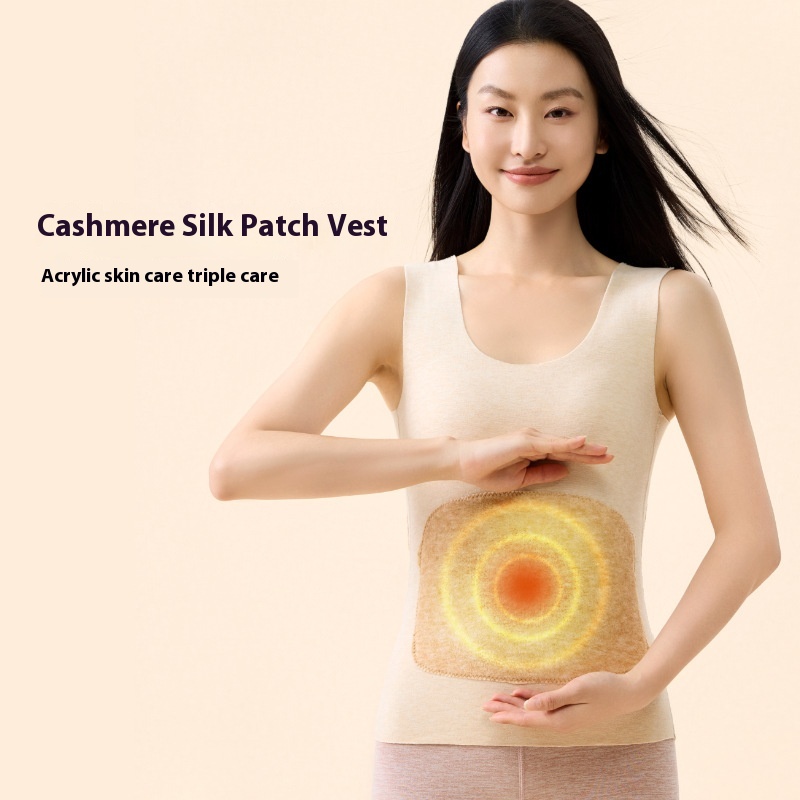 Warm Camel Hair Patch Vest For Women Double-sided Brushed Cashmere Silk Men's Bottoming Shirt Underwear
