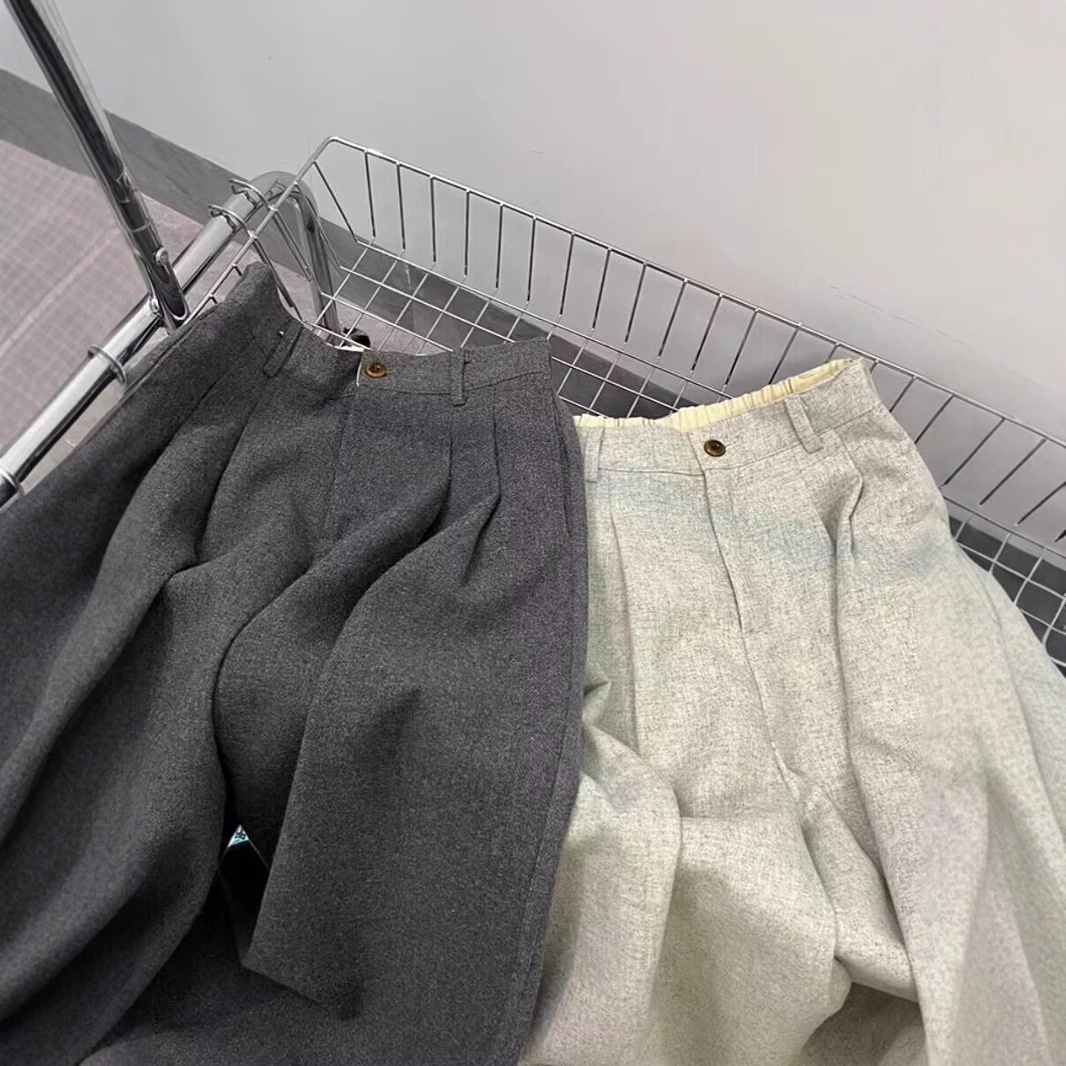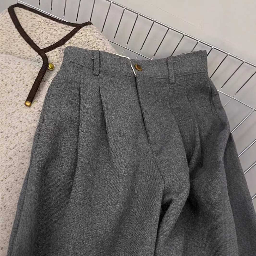 CHAO-level Recommendation!Dark Gray Cashmere Wide-leg Pants For Women Autumn And Winter Thick High Waist Loose Woolen Casual Long Pants