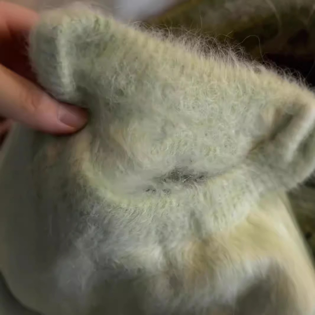 Milk Fufu Lazy Style Green Mohair Sweater Women's Thickened High-end Feeling Super Beautiful Mink Wool Sweater