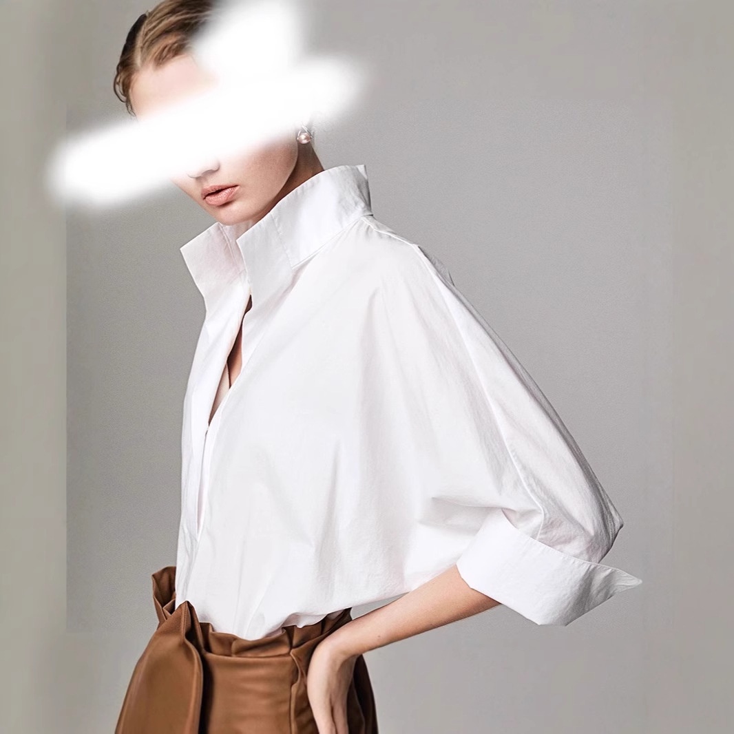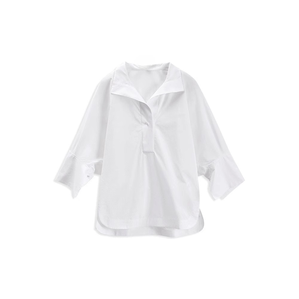 White Shirt Women's Casual All-match V-neck Commuter Shirt Pure Cotton Breathable Three-quarter Sleeve Short-sleeved Temperament Top