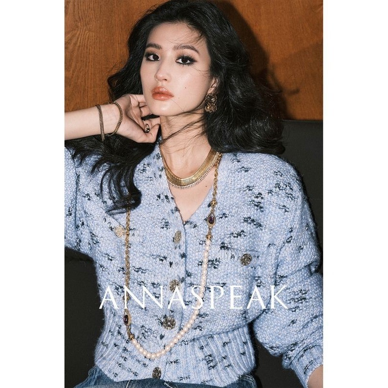 Anti-pilling Australian Merino Imitation Wool Blended Space-dyed Floral Yarn V-neck Sweater Cardigan