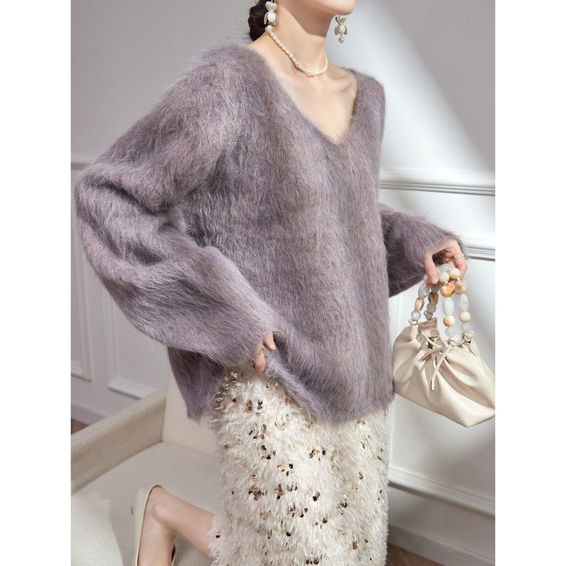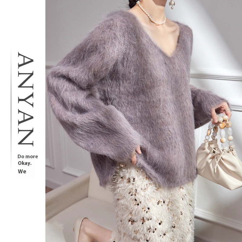 An Yan Autumn And Winter High-end Super Good-looking Sweater Loose Lazy Style Soft Glutinous V-neck Pullover Top Female