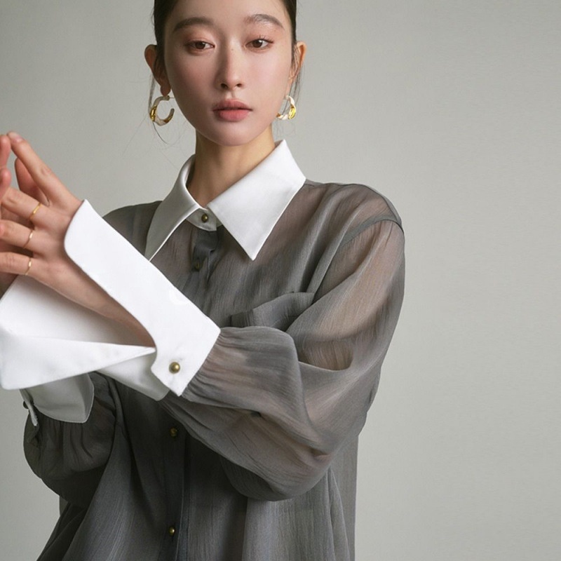 An Yan French Fashionable Early Spring Temperament Fragrance Style Shirt Gray Retro Loose Shirt Female Top