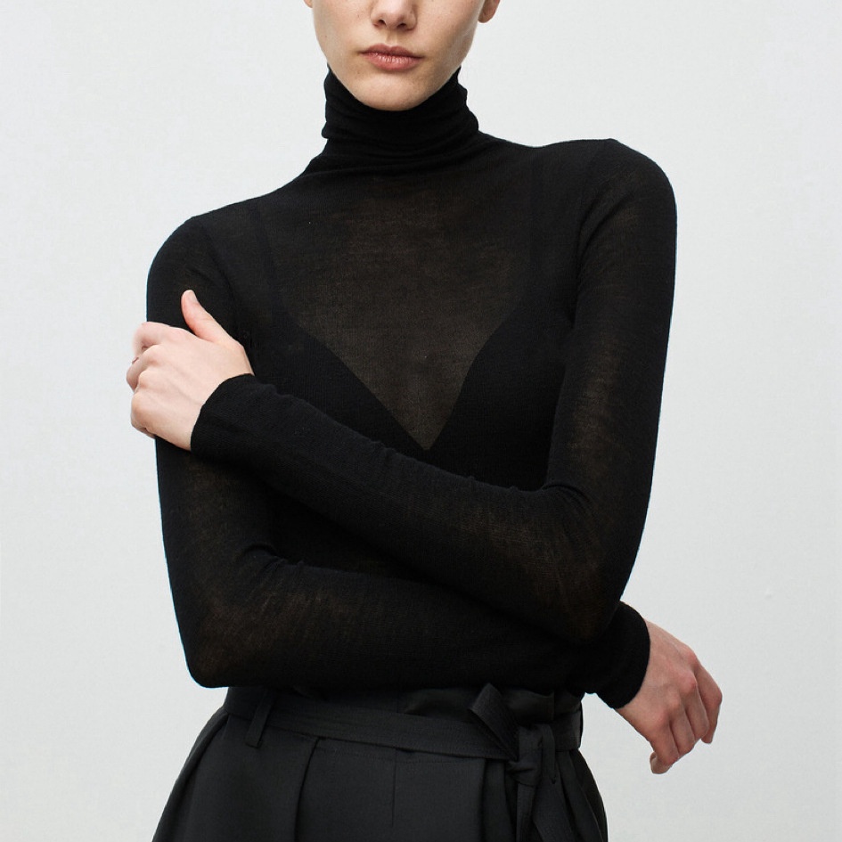 See-through German Biella Super140s Wool Bottoming Sweater Top For Women