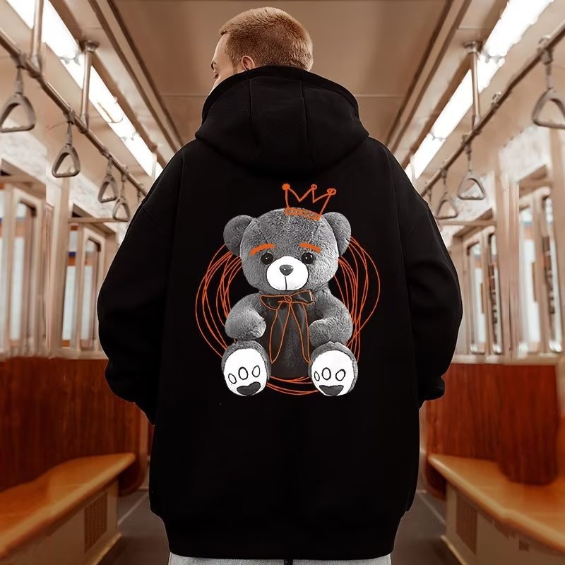 Retroy Bear Cartoon Sweatshirt Fat Boy Jacket Hooded Loose Large Size Loose Pullover Jacket
