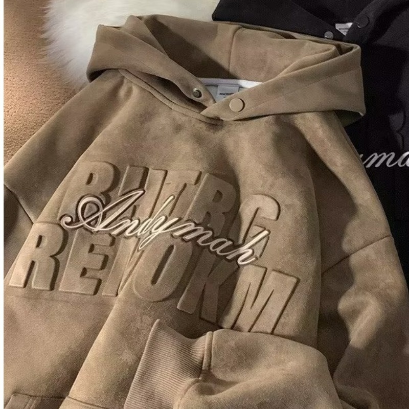 Heavyweight Sweatshirt Men'sy Suede Hooded Jacket American Retro Loose Casual Pullover Top