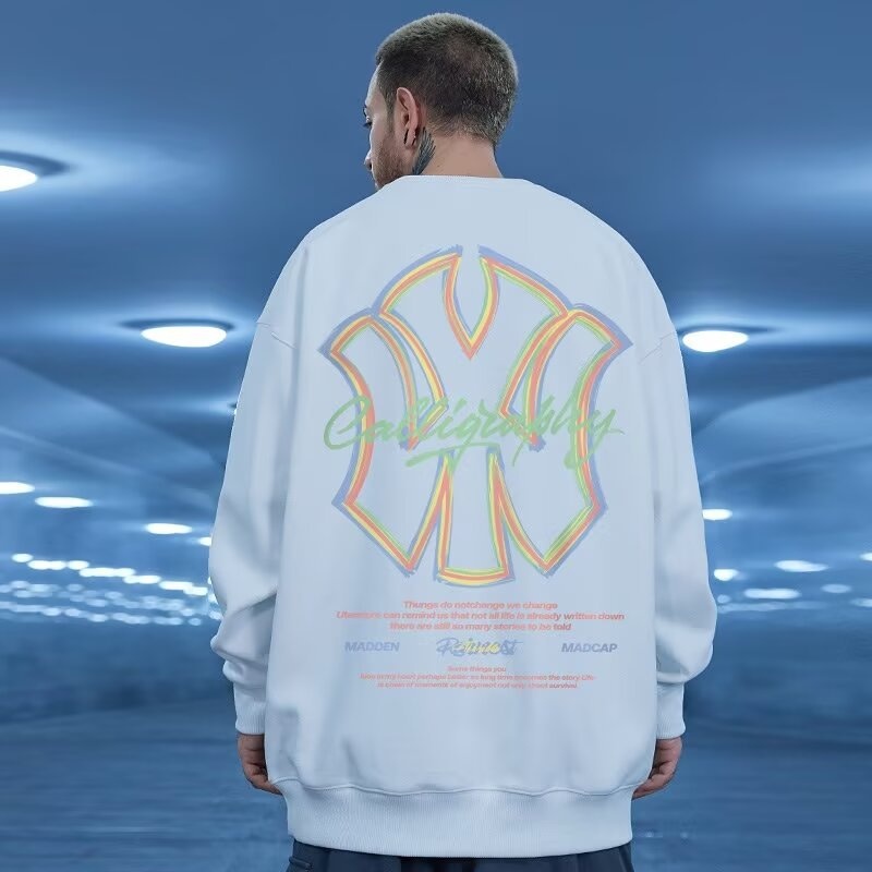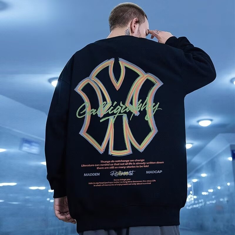 Round Neck Sweatshirt Men's Oversize Fat Loose Plus Size Casual Pullover Top Spring And Autumn