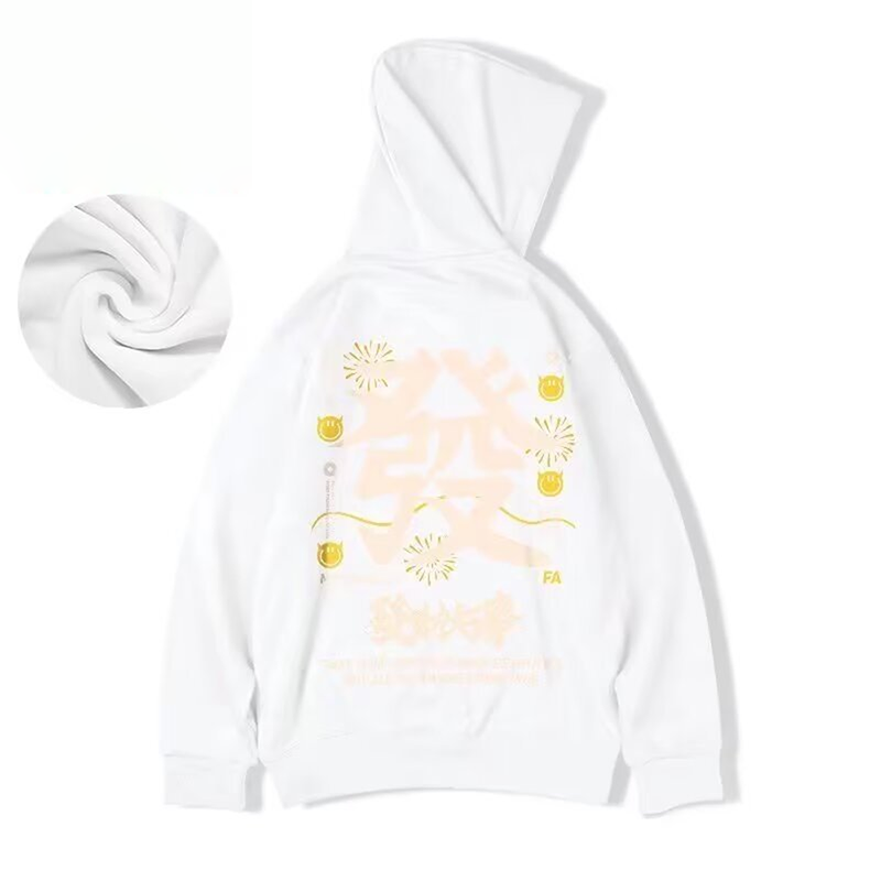 Chinese Year Sweater Men's Hooded Jacket Loose Plus Size Oversize Autumn Fortune Printed Fleece-lined Hoodie