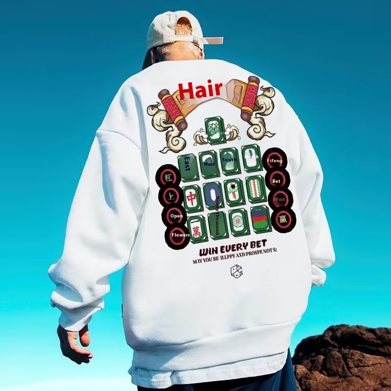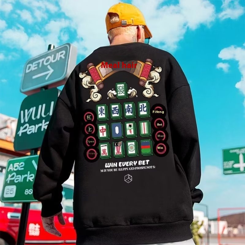 Sweat And Mahjong Printed Long-sleeved T-shirt Men's Crewneck Sweat And Couple's Top Fashionable Loose