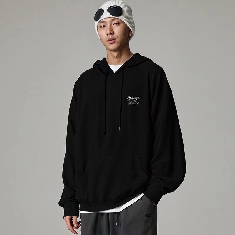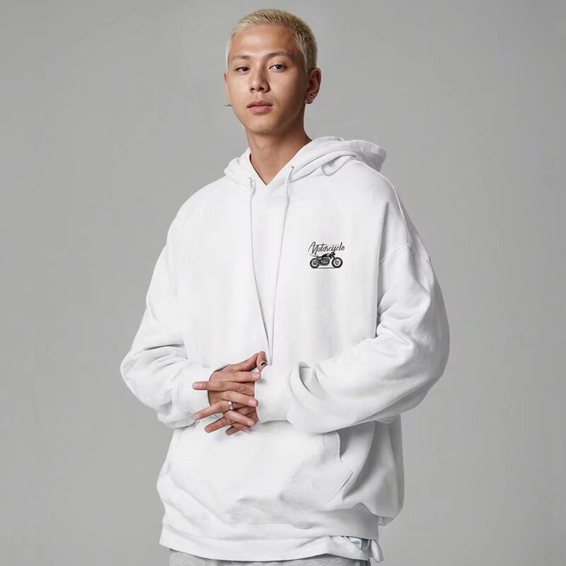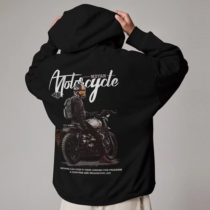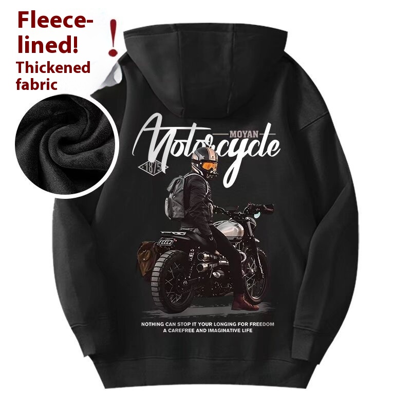 Motorcycle Printed Sweatshirt Men's Autumn And Winter Fleece-lined American Style High Street Autumn Top Hooded Jacket For Teenagers