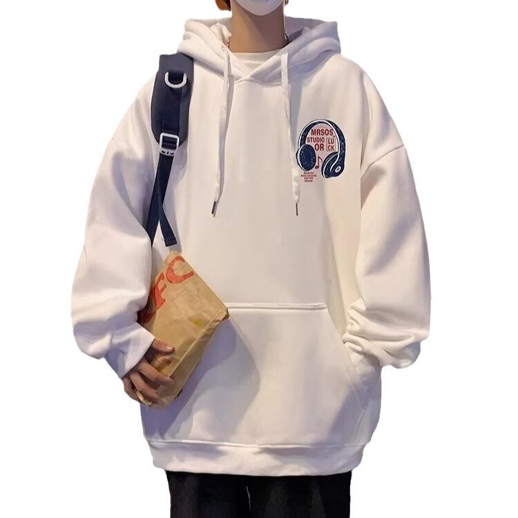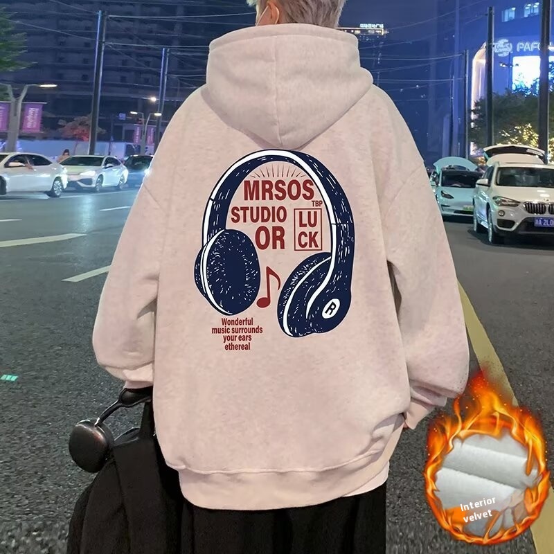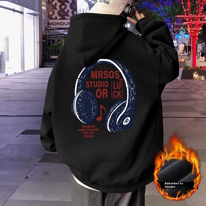 Men's Spring Loose Casual Hoodie American Style Street Fashion Brand Headphone Printed Fleece-lined Sweater