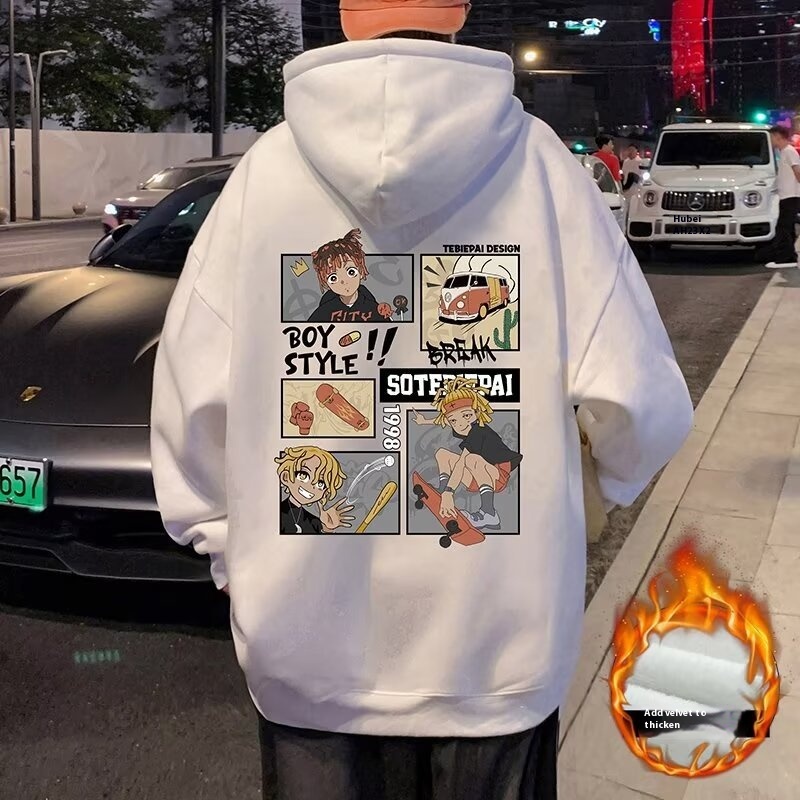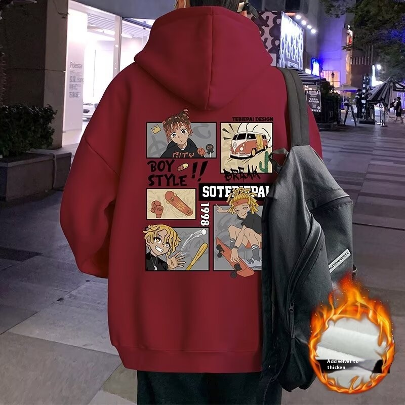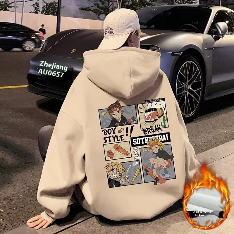 Hiphop潮牌高街加绒卫衣男春秋款重磅宽松美式连帽外套上衣服