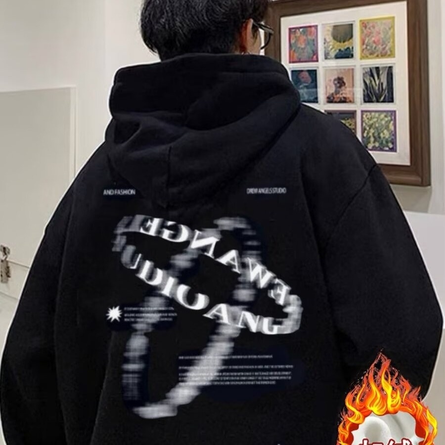 American Style Retro Hooded Fleece-lined Sweatshirt Men's Autumn Loose All-match Student Pullover English Top
