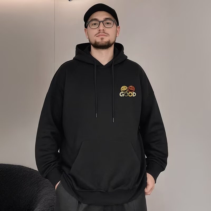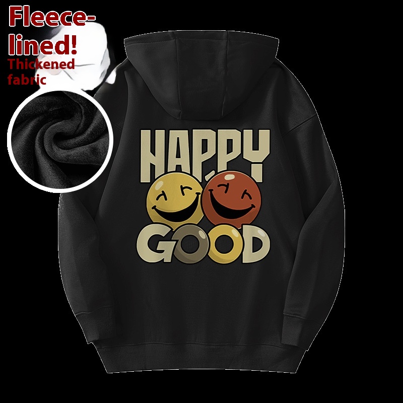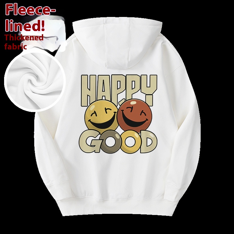 Smiley Plus Size Sweater Men's Autumn Fleece-lined Youth Loose American Style High Street Fashion Brand Jacket Hoodie