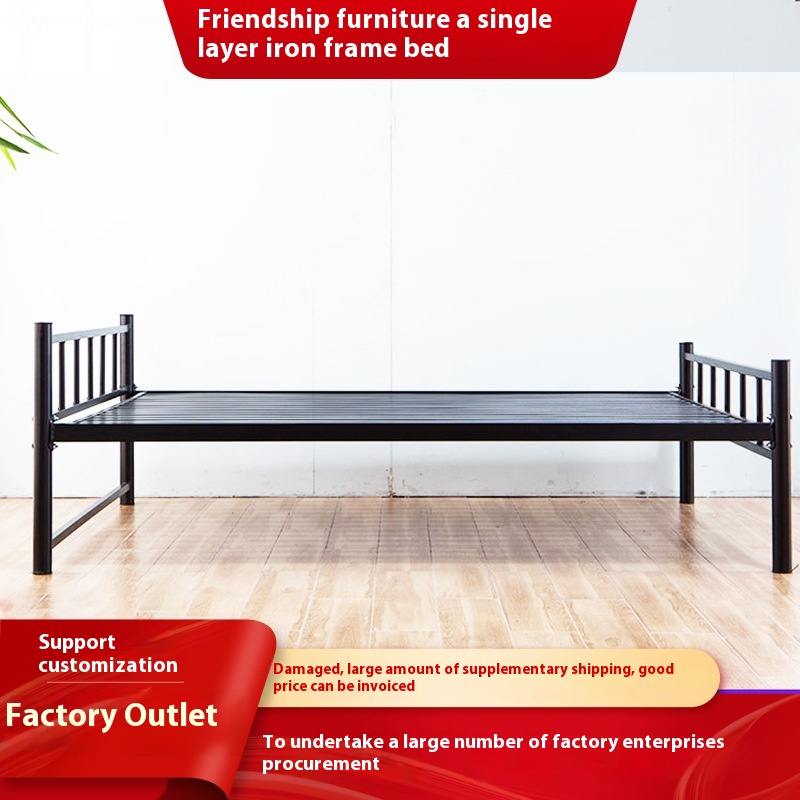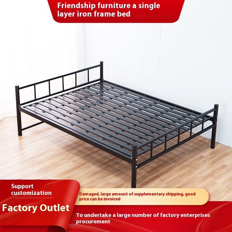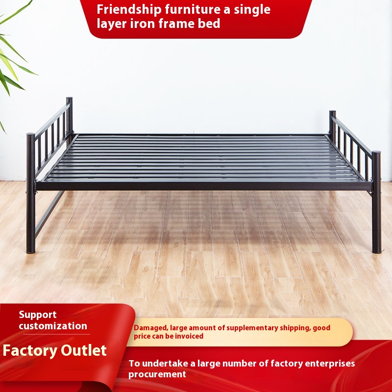 Iron Single Bed1.2 Meters1.5 Meters Single Layer Iron Bed Employee Student Construction Site Dormitory Rental Room Double Iron Frame Bed